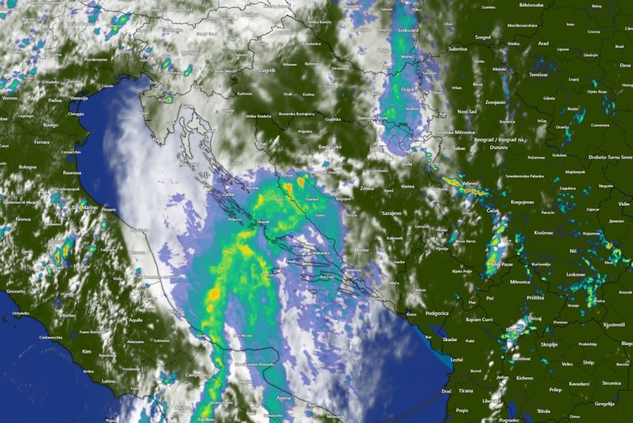 Noćas je malo kiše bilo na sjevernom i dijelu srednjeg Jadrana, a sredinom dana kišni oblaci s područja Italije ušli su u srednji Jadran i stigli do dijela obale i otoka Dalmacije.