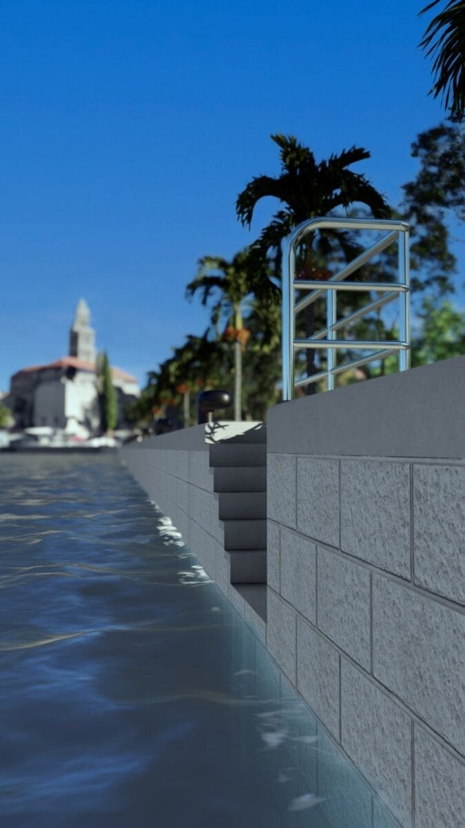 Obala će biti popločana kamenom i opremljena komunalnom opremom, rasvjetom, opskrbnim ormarićima za opskrbu brodova strujom i vodom, te dodatnim zelenim površinama i dekorativnim podnim pločama koje će vizualno razdvajati dio za privez, ukrcaj i iskrcaj te opskrbu brodova od dijela koji služi za pješačku komunikaciju. Važno je napomenuti da je projektom predviđeno osiguranje pristupačnosti osobama s invaliditetom i osobama smanjene pokretljivosti. Dakle, projektom je omogućena nesmetana komunikacija čitavom lokacijom, kao i pristup na javno prometnu površinu - sve bez barijera.