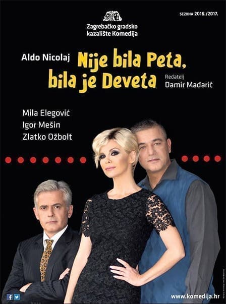 Festival Teatar uz more 24. svibnja otvara komedija "Nije bila Peta, bila je Deveta" čiju itekako poznatu glumačku postavu čine Mila Elegović, Igor Mešin i Zlatko Ožbolt koji u čas uvuku gledatelja u ljubavni trokut s dinamičnom ljubavnom zavrzlamom. Jer dovoljna je samo jedna ljupka aždaja da se u tren oka izvrne pomno poslagani život ambicioznog muškarca. Crni humor, groteska, intrige, pa i planiranje ubojstva u ovoj predstavi pretvoreni su u savršenu komediju apsurda.