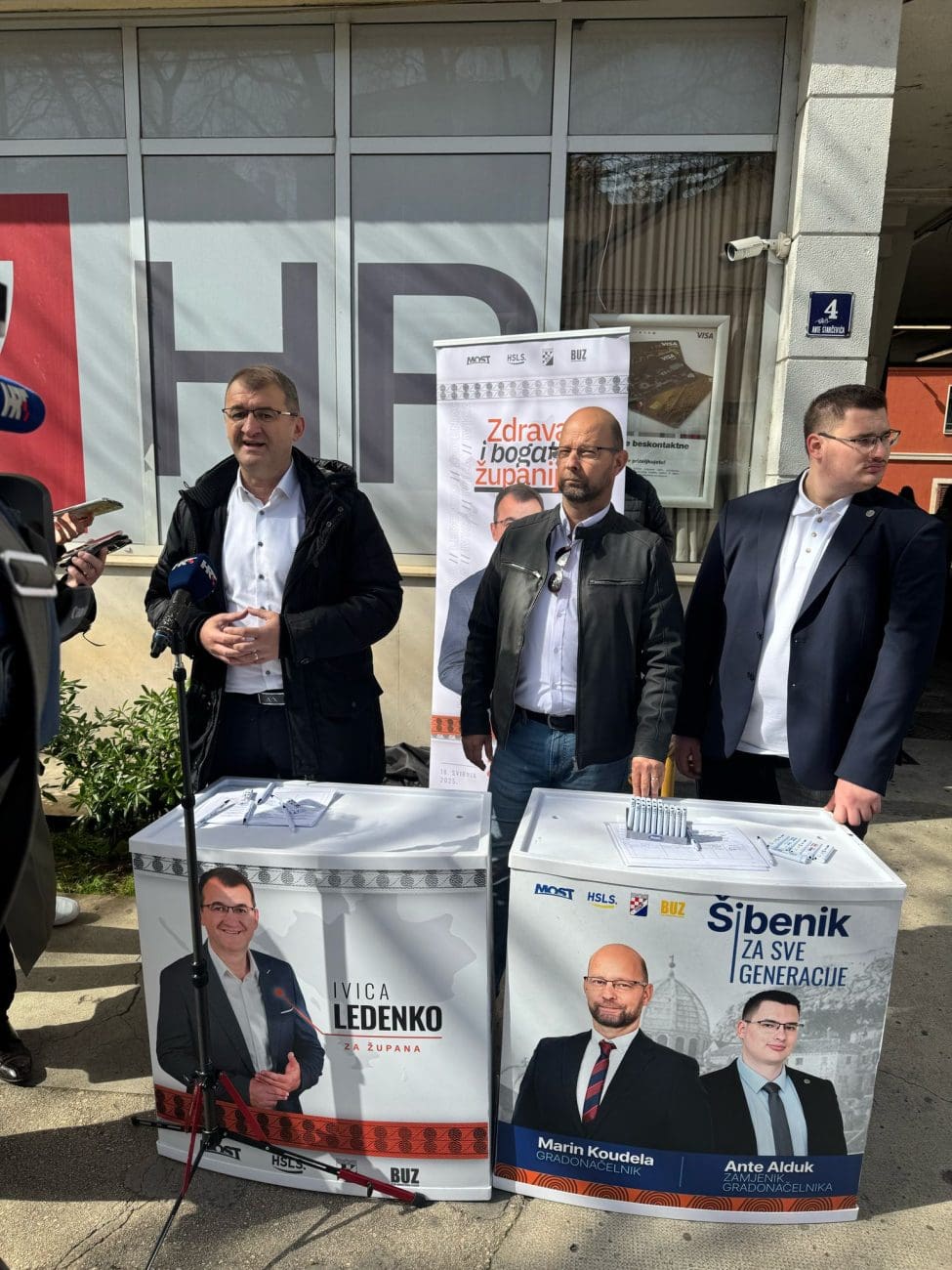 Na skupljanju potpisa u Šibeniku medijima su se obratili kandidati za župana Ivica Ledenko i gradonačelnika Marin Koudela ispred koalicije Most HSLS HSP i BUZ te istaknuli kako vjeruju u dobar odaziv građana jer im već sada pružaju jaku potporu.