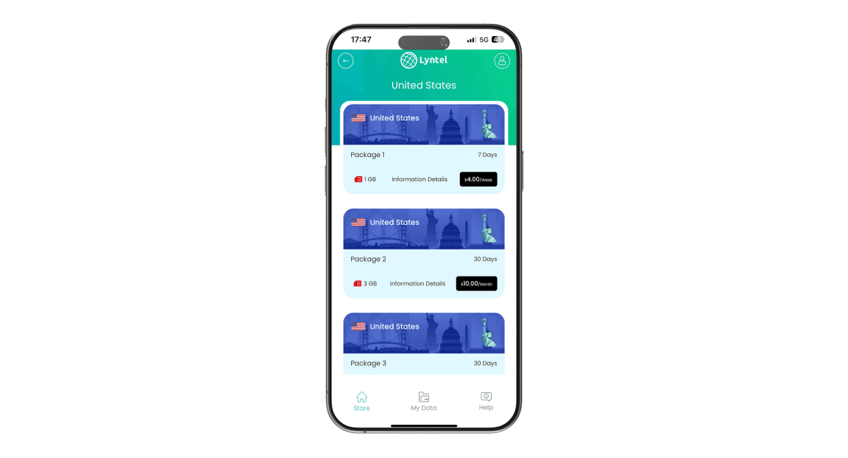 Aplikacija Lyntel nudi jedan elektronski SIM i kad ga dodate na svoj mobitel možete početi kupovati pakete s podatkovnim prometom. Instalira se vrlo jednostavno. Nakon skidanja aplikacije registracija je gotova za minutu i odmah možete početi kupovati pakete prometa za željenu destinaciju.