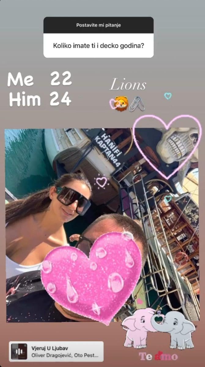 Progovorila je i o svom ljubavnom životu te je otkrila da je već 6 godina u sretnoj vezi. - Ja imam 22 godine, a on 24 - napisala je preko fotografije njih dvoje na kojem mu je naljepnicom pokrila lice. Otkrila je i da su oboje lavovi u horoskopu.