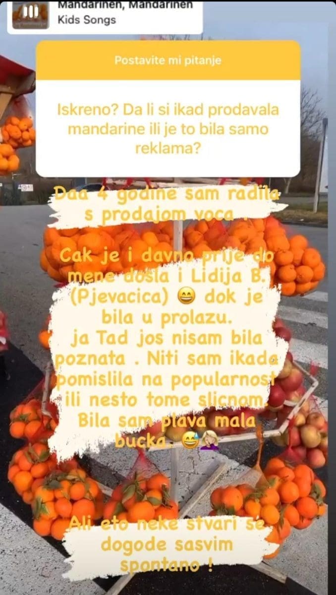 Jedan pratitelj upitao ju je je li stvarno prodavala mandarine ili je to samo bila reklama?