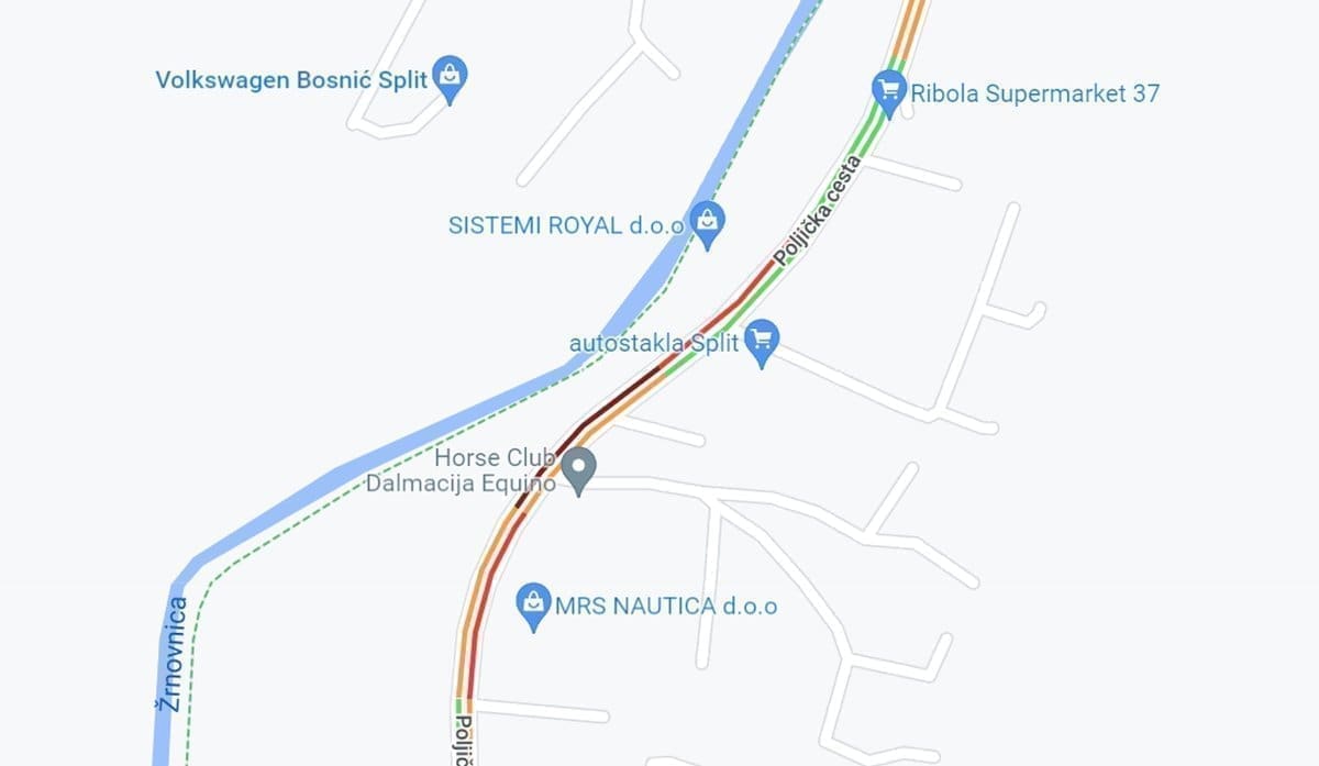 Veće gužve stvaraju se u Žrnovnici na istoku Splita. Naime, u tijeku su radovi na postavljaju semafora na Poljičkoj cesti u smjeru Splita.