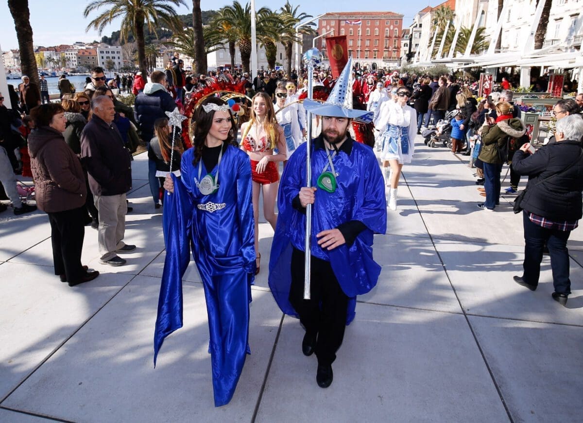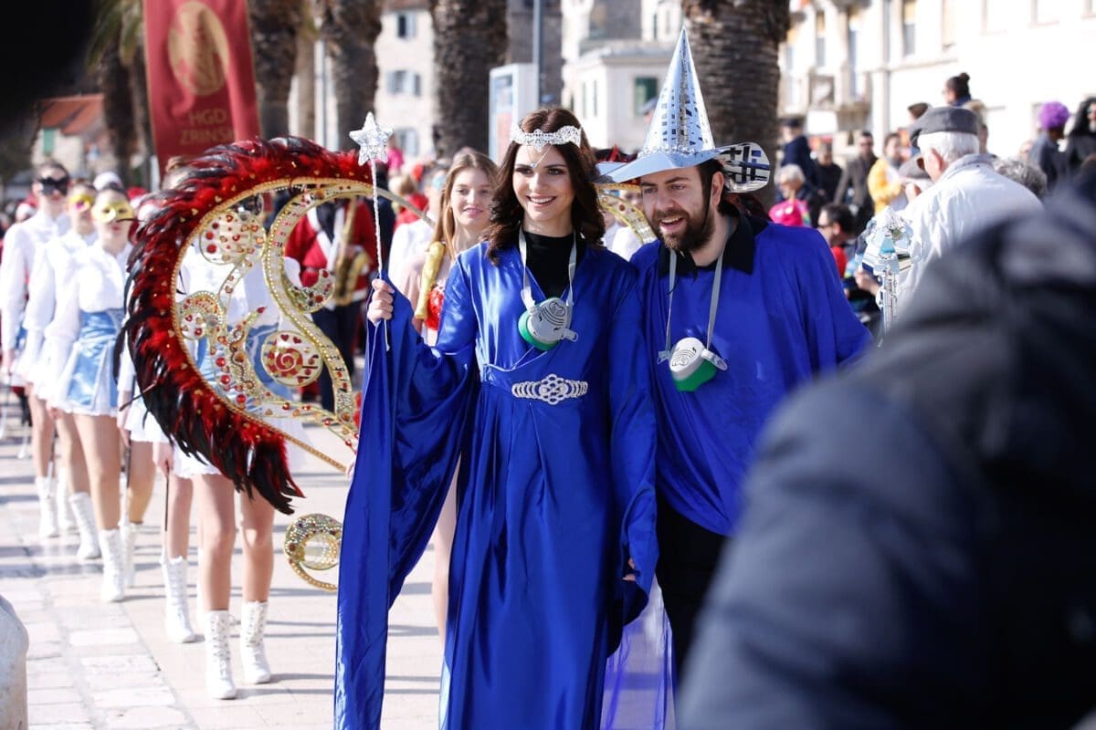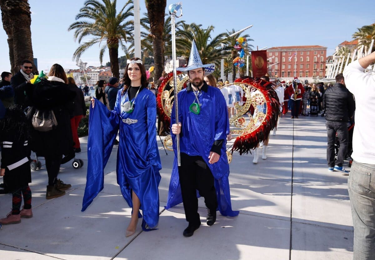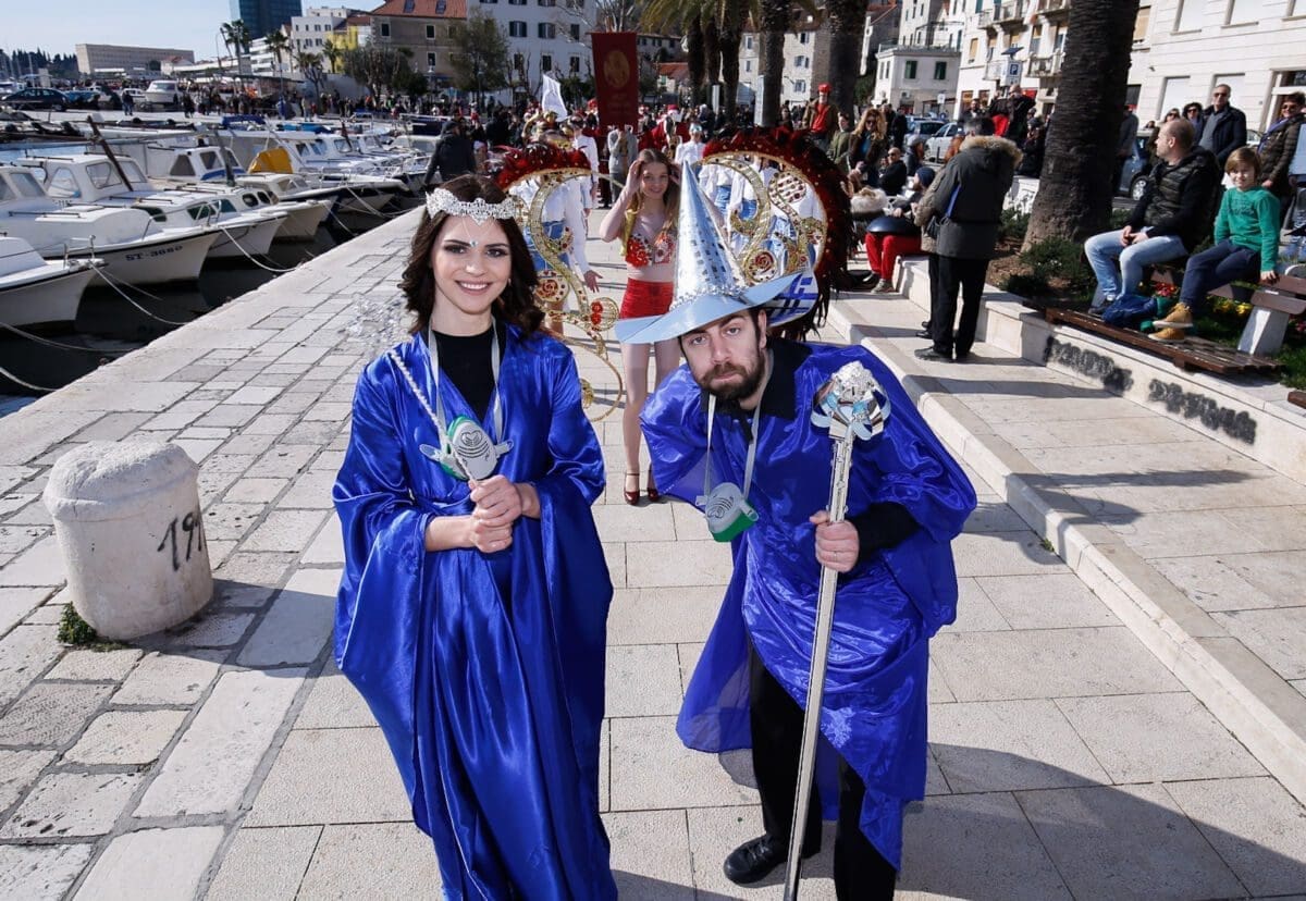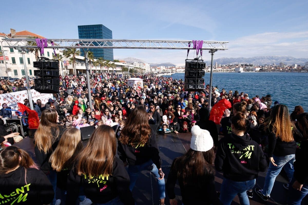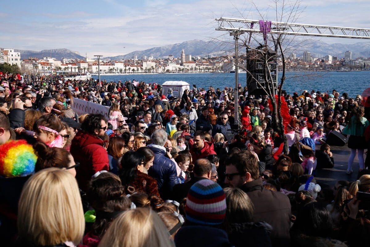 Karnevalsko ludilo u Splitu je krenulo već od 10 sati na Zapadnoj obali gdje je organiziran krnjeval za osnovce i starije. Program je započeo interaktivnom edukativnom krnjevalskom predstavom na temu Krnjepovca te nastavio plesnim nastupima plesnog vrtića i MTV Showdance Centra plesa Split i plesnog kluba DNF. Maškarana povorka, u kojoj su bile i brazilske plesačice, mažoretkinje, puhački orkestar HDG Zrinski, je potom krenula prema Rivi.