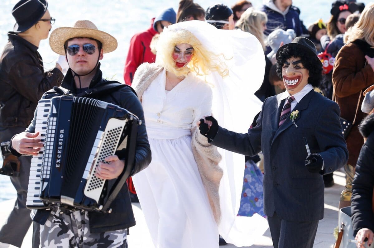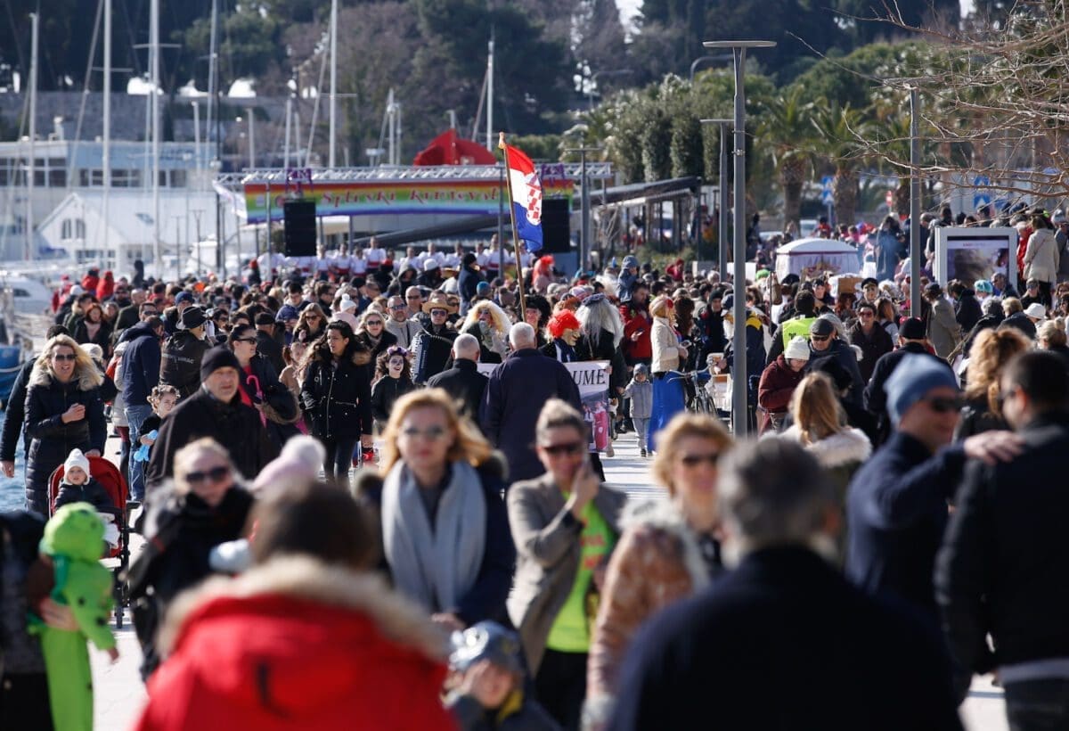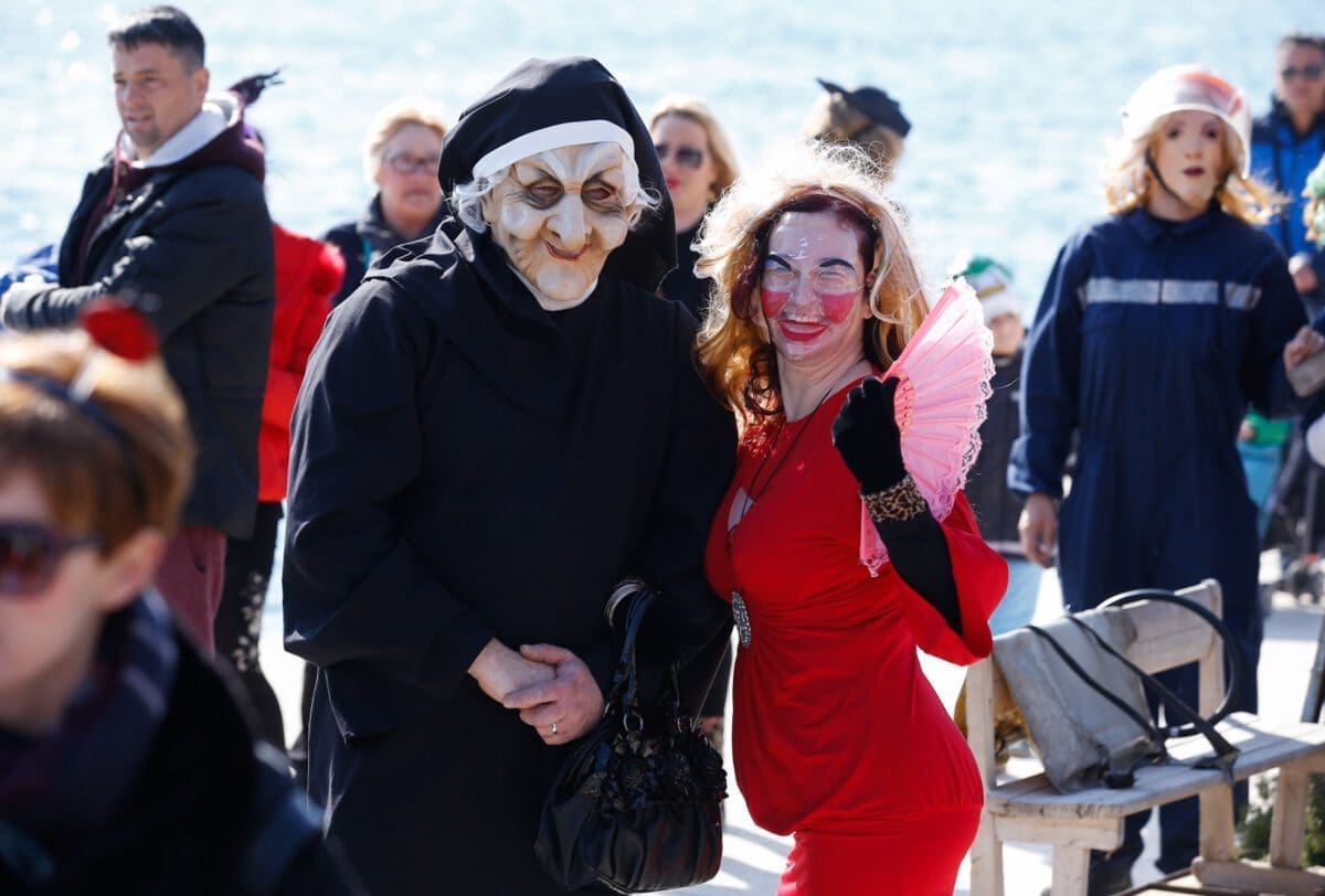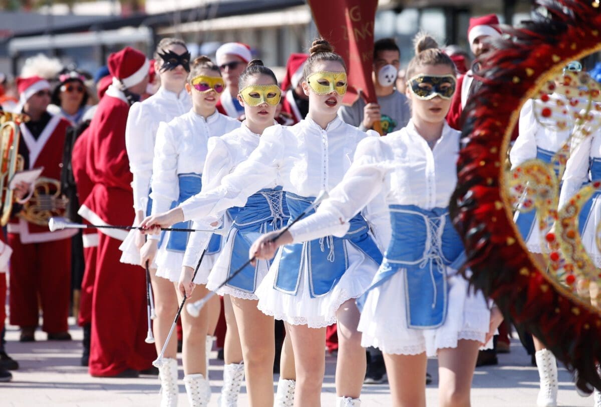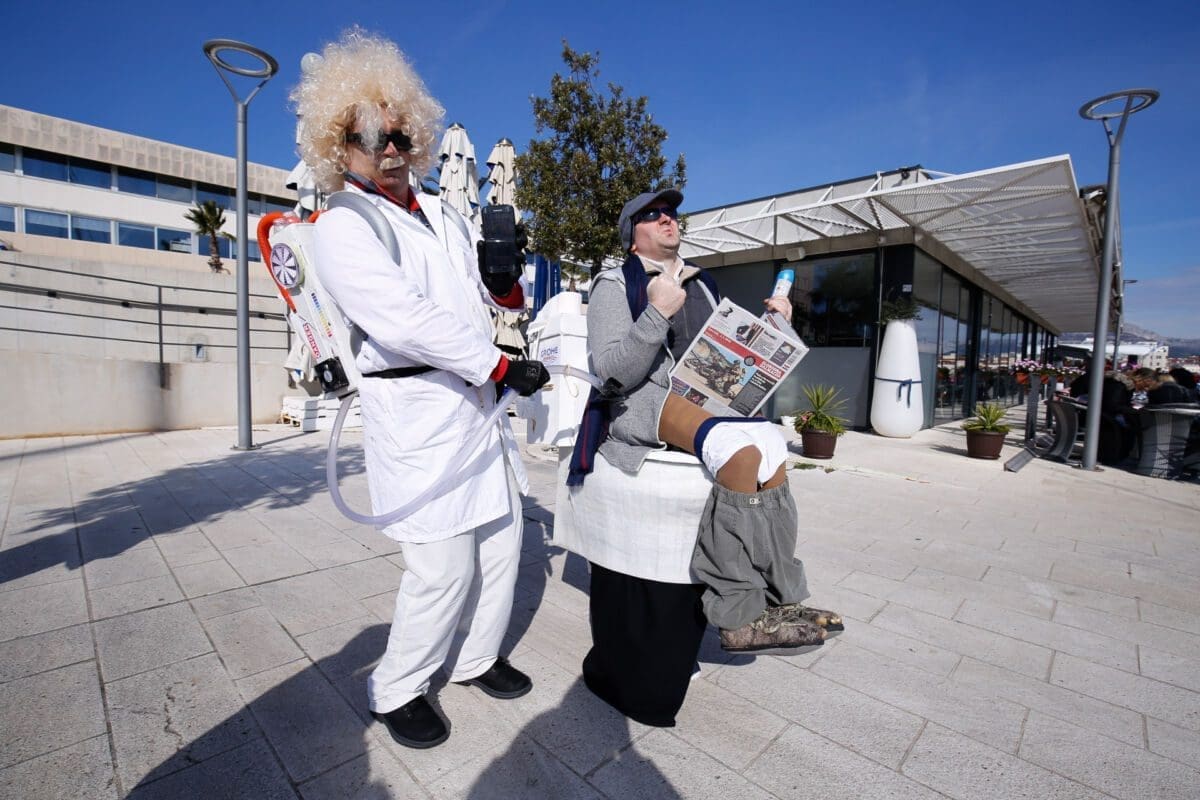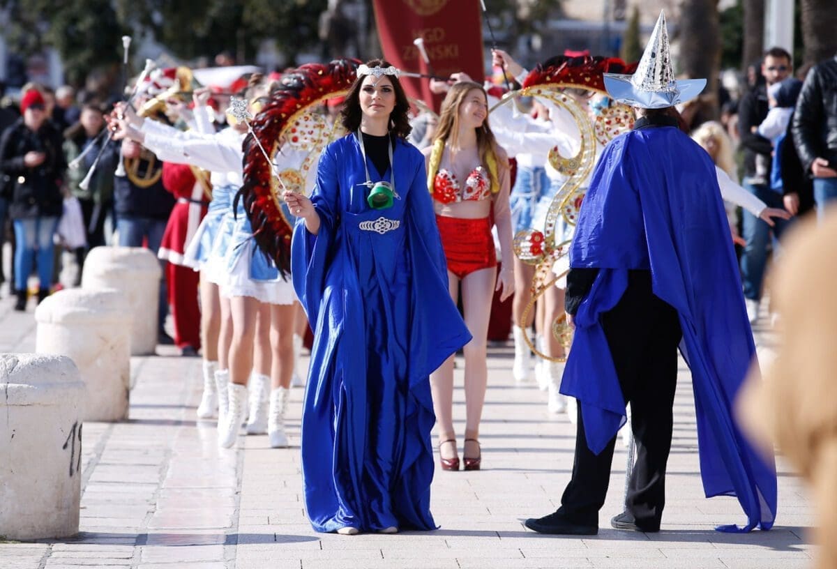 Karnevalsko ludilo u Splitu je krenulo već od 10 sati na Zapadnoj obali gdje je organiziran krnjeval za osnovce i starije. Program je započeo interaktivnom edukativnom krnjevalskom predstavom na temu Krnjepovca te nastavio plesnim nastupima plesnog vrtića i MTV Showdance Centra plesa Split i plesnog kluba DNF. Maškarana povorka, u kojoj su bile i brazilske plesačice, mažoretkinje, puhački orkestar HDG Zrinski, je potom krenula prema Rivi.