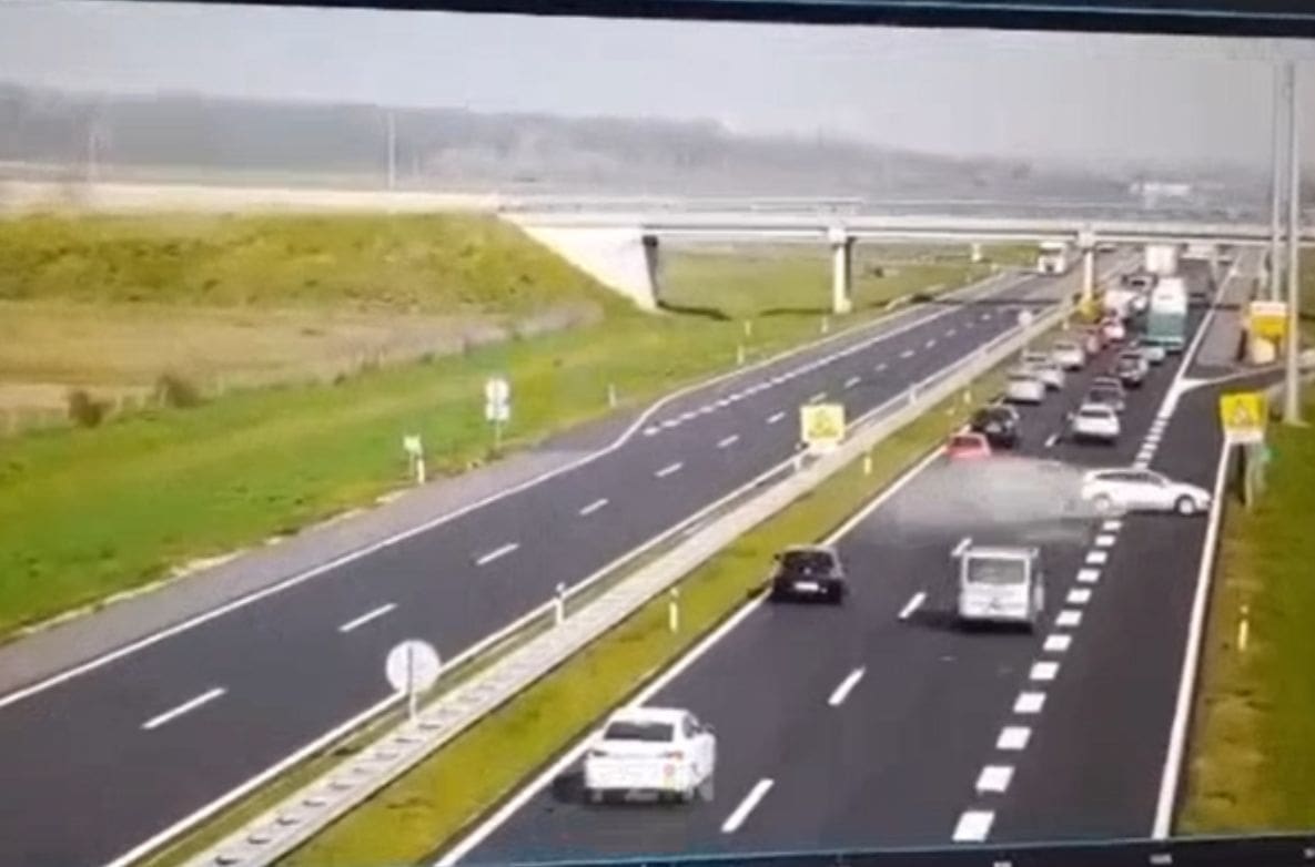 Društvenim mrežama širi se video snimka sudara automobila na autocesti A3. Kamere su zabilježile trenutak kada se vozač automobila zabio u kolonu vozila.