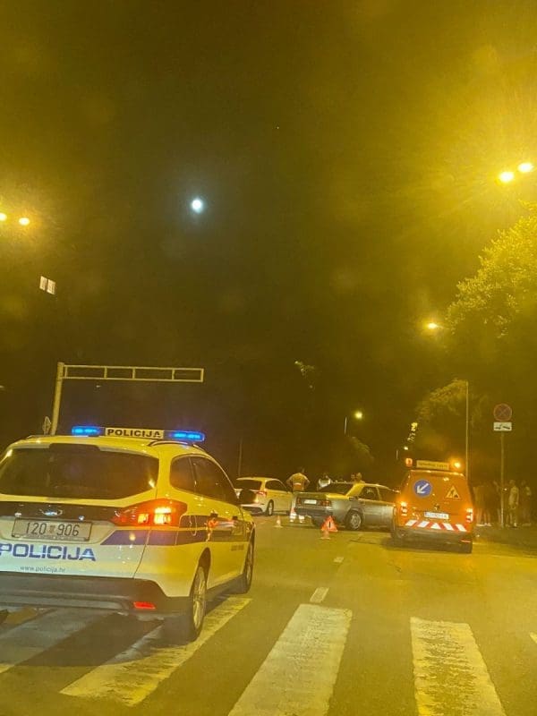 Nešto iza 20 sati dogodila se prometna nesreća na križanju Dubrovačke ulice i Mažuranićevog šetališta. Sudarila su se dva osobna vozila.