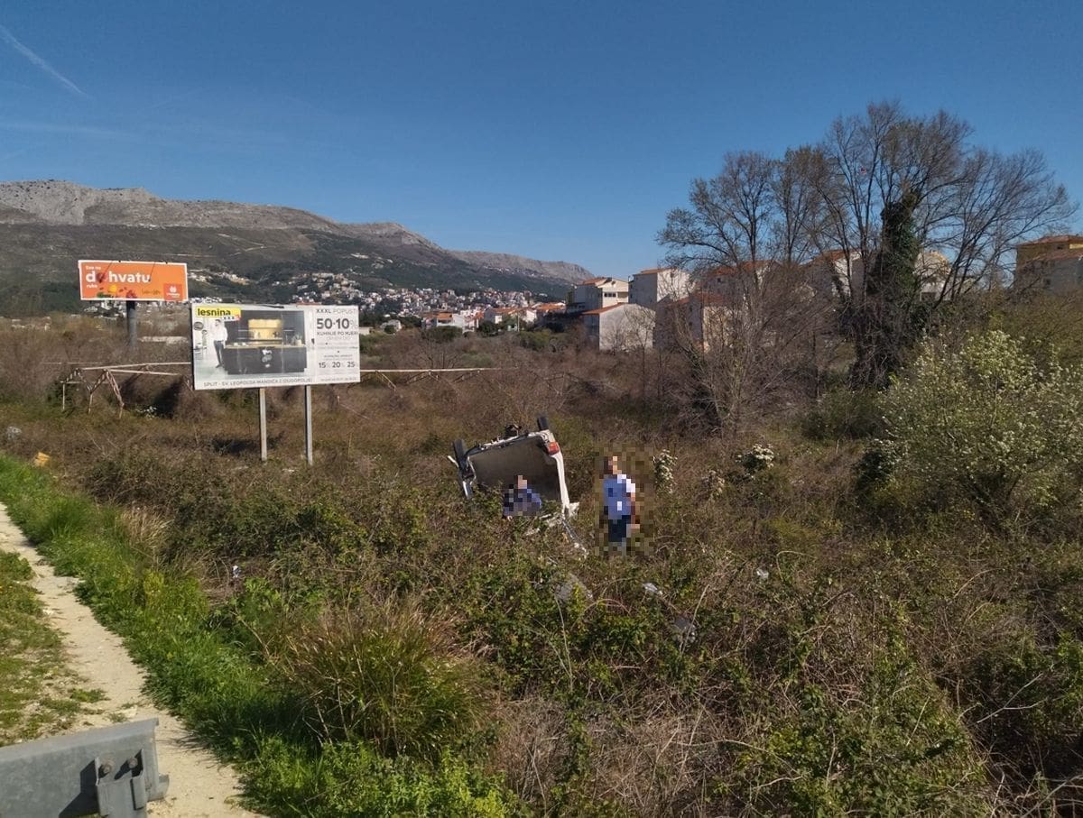 Došlo je do sudara dvaju vozila, a od siline udarca kombi vozilo probilo je zaštitnu ogradu, a zatim završilo van ceste na krovu.