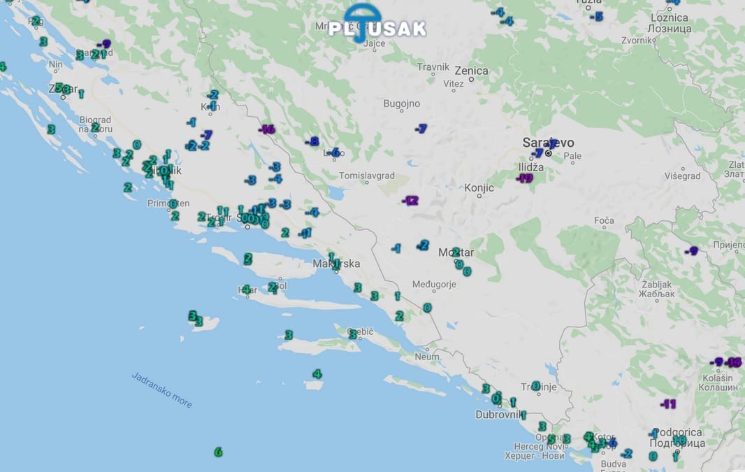 U 5 sati ujutro temperatura zraka u Splitu službeno je pala na -1°C, a zbog vjetra osjet hladno će je -11 stupnjeva. Tako je Split još jučer imao ugodnih 15 stupnjeva, a trenutno ima pravi zimski ugođaj. Najniža temperatura zraka u Dalmaciji u 5 sati ujutro zabilježena je na Dinari (Velika Duvjakuša) -17°C.