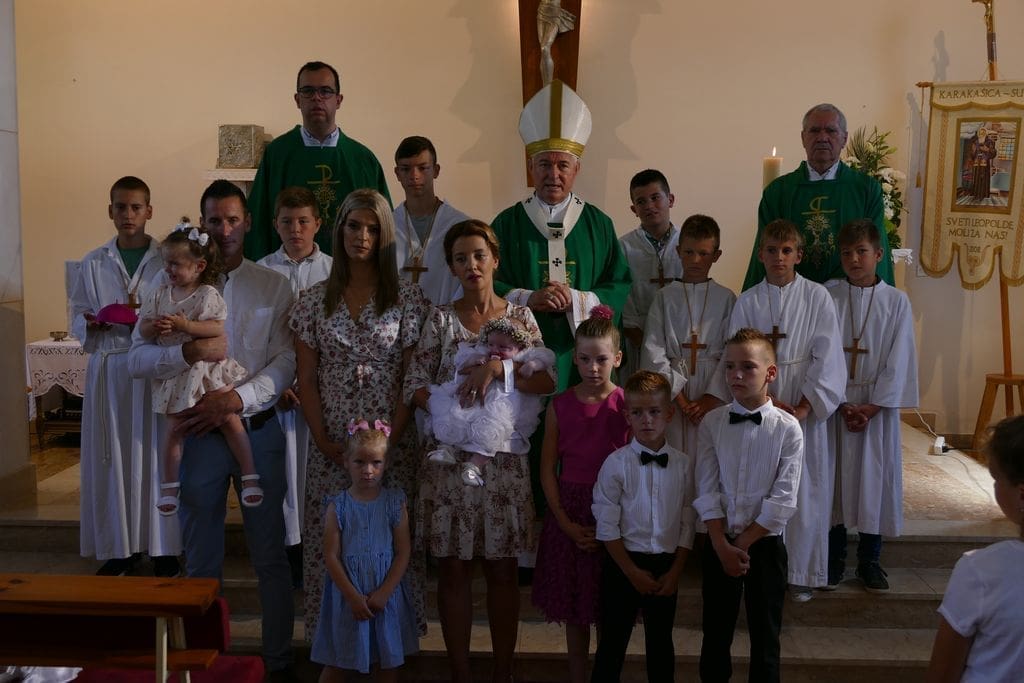 Splitsko-makarski nadbiskup i metropolit mons. Marin Barišić predvodio je u nedjelju 20. lipnja u filijalnoj crkvi svetog Leopolda Bogdana Mandića u Karakašici, koja pripada Župi Gospe Sinjske, svečano euharistijsko slavlje tijekom kojeg je krstio malenu Mašu - šesto dijete u obitelji Tamare i Josipa Balajića. U koncelebraciji su bili župnik fra Perica Maslać, župni vikar za Karakašicu fra Frano Pupić Bakrač i don Nikola Šakić. Misi je nazočio i novoizabrani gradonačelnik Sinja Miro Bulj.