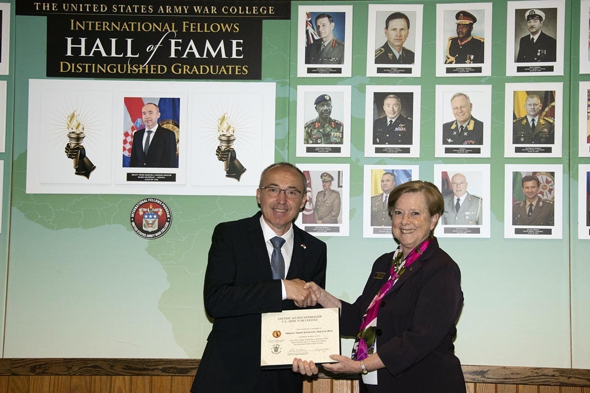 Potpredsjednik Vlade i ministar obrane Damir Krstičević u utorak, 22. svibnja 2018. svečano je primljen u Kuću slavnih međunarodnih polaznika Ratne škole kopnene vojske SAD-a (International Fellows Hall of Fame US Army War College).