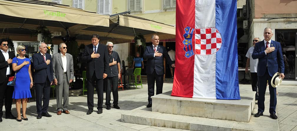 Nešto kasnije položen je cvjetni aranžmana na spomeniku u Parku branitelja na Obala kneza Branimira. Središnji dio obilježavanja počeo je podizanjem hrvatske zastave uz intoniranje državne himne na štandarac na Narodnom trgu.