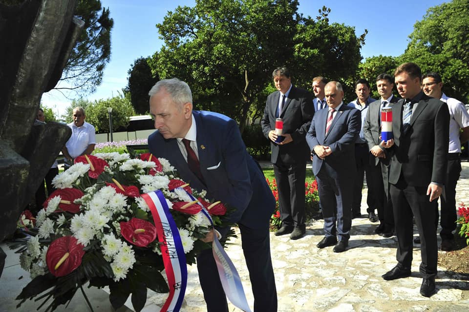 Župan splitsko-dalmatinski Blaženko Boban, predsjednik Županijske skupštine Petroslav Sapunar, splitski gradonačelnik Andro Krstulović Opara i predsjednik splitskog Gradskog vijeća Igor Stanišić položili su lovorov vijenac kod spomen ploče hrvatskim braniteljima na bočnoj strani Stare gradske vijećnice na Narodnom trgu.