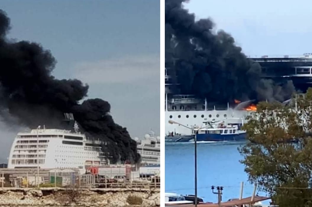 Na brodu MSC Lirica u Grčkoj luci Krf došlo je do požara. Plamen je zahvatio desnu stranu broda, koja je zahvaćena je gustim crnim dimom.
