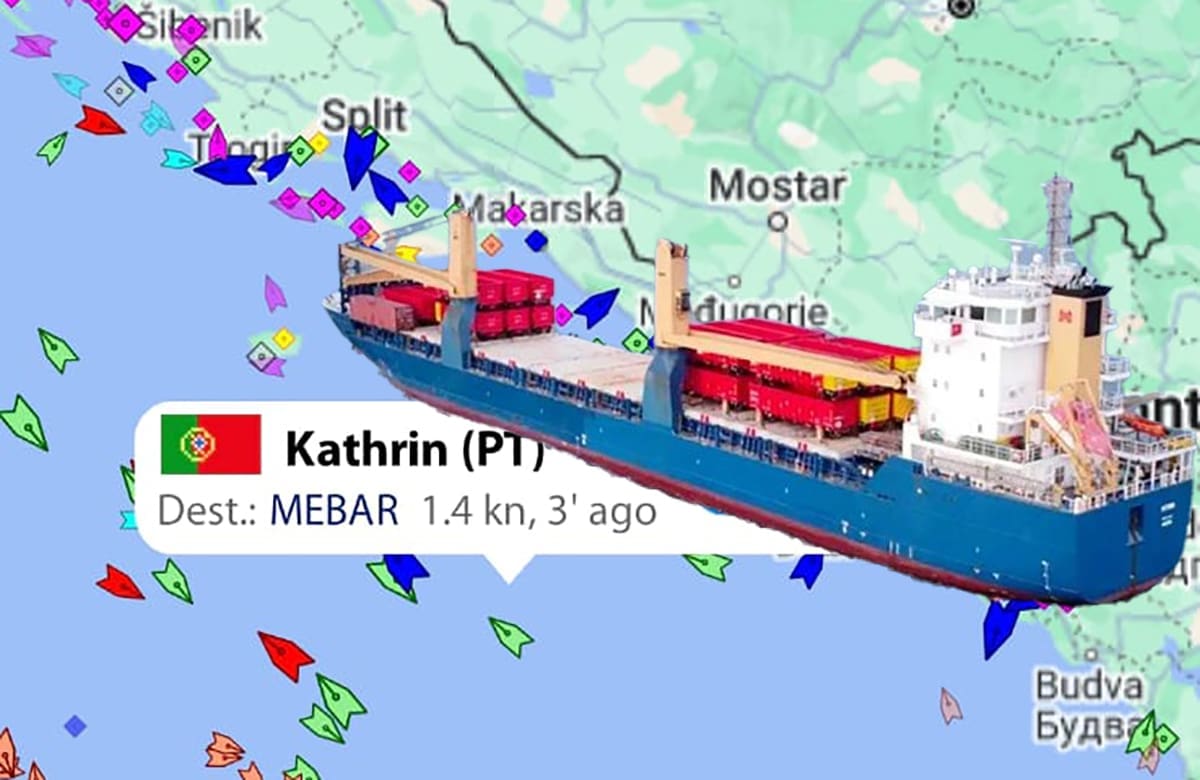 Prema platformi VesselFinder teretni brod koji plovi pod portugalskom zastavom Kathrin, u trenutku objave teksta, nalazio se u međunarodnim vodama jugozapadno od lastovskog otočja, na granici hrvatskih teritorijalnih voda.