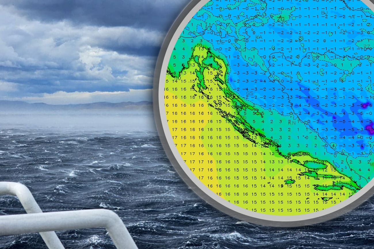 Bit će to uvod u sunčan i hladan četvrtak. Puhat će jaka bura s vrlo jakim do olujnim udarima, a temperature će osjetno past. Tako će u najtoplijem dijelu dana većinom biti od 13 do 18°C. Zbog orografskih oblaka malo snijega bit će u planinama BiH i Crne Gore iznad 1500 metara, a pokoja pahulja može se dogoditi i na vrhovima Dinare i Kamešnice.