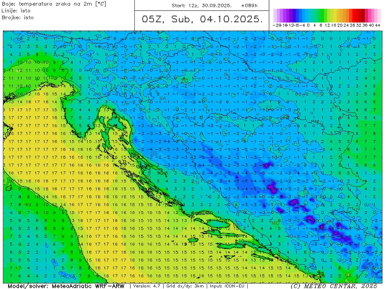 Slično će biti u petak, s tim da će najvjetrovitije biti ujutro, a drugi dio dana obilježit će značajni slabljenje bure. Jutro i večer će biti vrlo hladni za dio godine. Čak uz obalu tada temperature mogu ponegdje biti ispod 10°C. Čini se da će najhladnije biti u subotu ujutro kada u nekim kotlinama Dalmatinske zagore može biti slabog mraza.