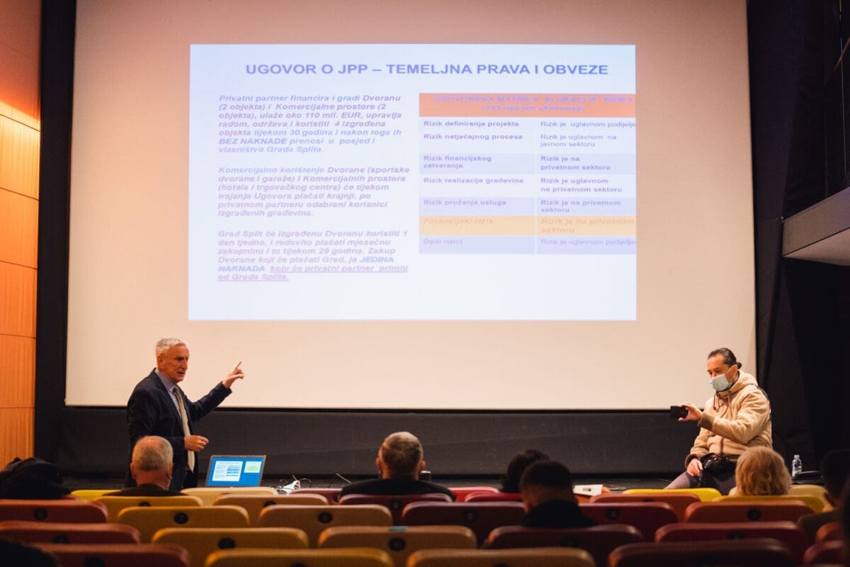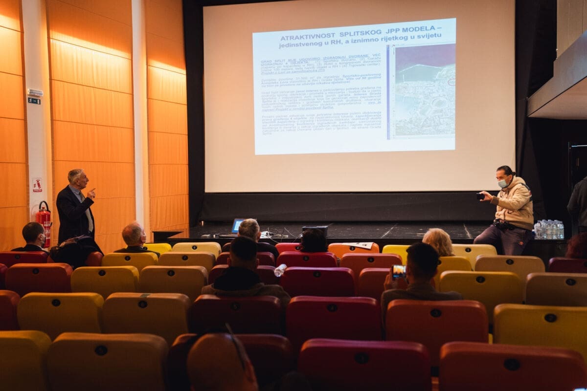 Dejan Kružić, bivši ovlašteni pregovarač Grada Splita u postupku sklapanja ugovora o javno-privatnom partnerstvu u izgradnji "Spaladium Arene" sažeto je danas u kinoteci „Zlatna vrata“ održao javnu prezentaciju u svezi čitavog niza dokumenata koje je prikupljao, a koji su vezani uz izgradnju centra u Lori, odnosno projektiranja kompleksa Spaladium arene.