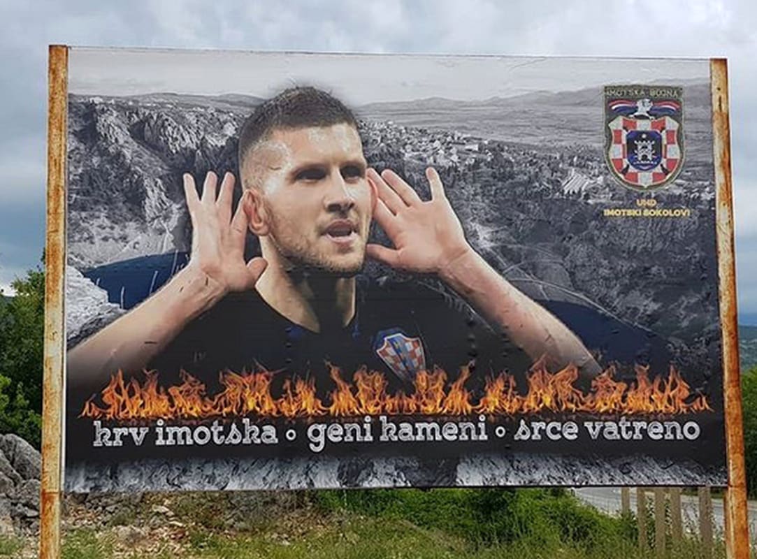 Plakati za vrijeme prvenstva niču kao gljive poslije kiše. Prvi je tu čast imao Perišić na ulazu u Omiš, zatim izbornik Dalić u Livnu, a sada je na red došao i Rebić.