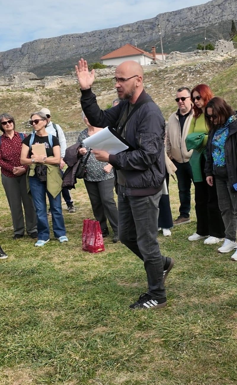 Stazama nekada moćnog rimskog grada Salone, kustos Arheološkog muzeja u Splitu Nino Švonja sudionike je proveo kroz priču o jednoj od najvećih građevina tog vremena na istočnom Jadranu. Ako se izuzmu gradske zidine s kulama, upravo je amfiteatar bio najveći objekt u Saloni – monumentalno zdanje koje je služilo za zabavu rimskog puka, poznatu sintagmu „kruha i igara“.