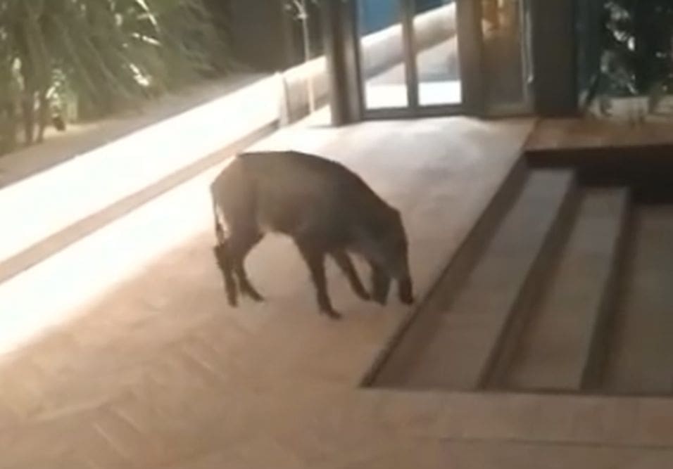 Nije ništa neobično na Hvaru susresti divlje svinje, no nije baš uobičajeno da se šetaju po hotelima. Ovaj je vepar očito zalutao pa mu nije preostalo drugo nego učiniti đir po novootvorenom hotelu.