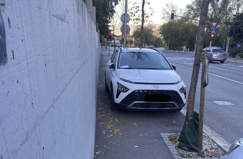 Tako je danas u Matoševoj ulici vozač Hyundaija odlučio blokirati čitav prolaz za pješake, pa su građani morali šetati cestom. Prometni redar ostavio je poklon.