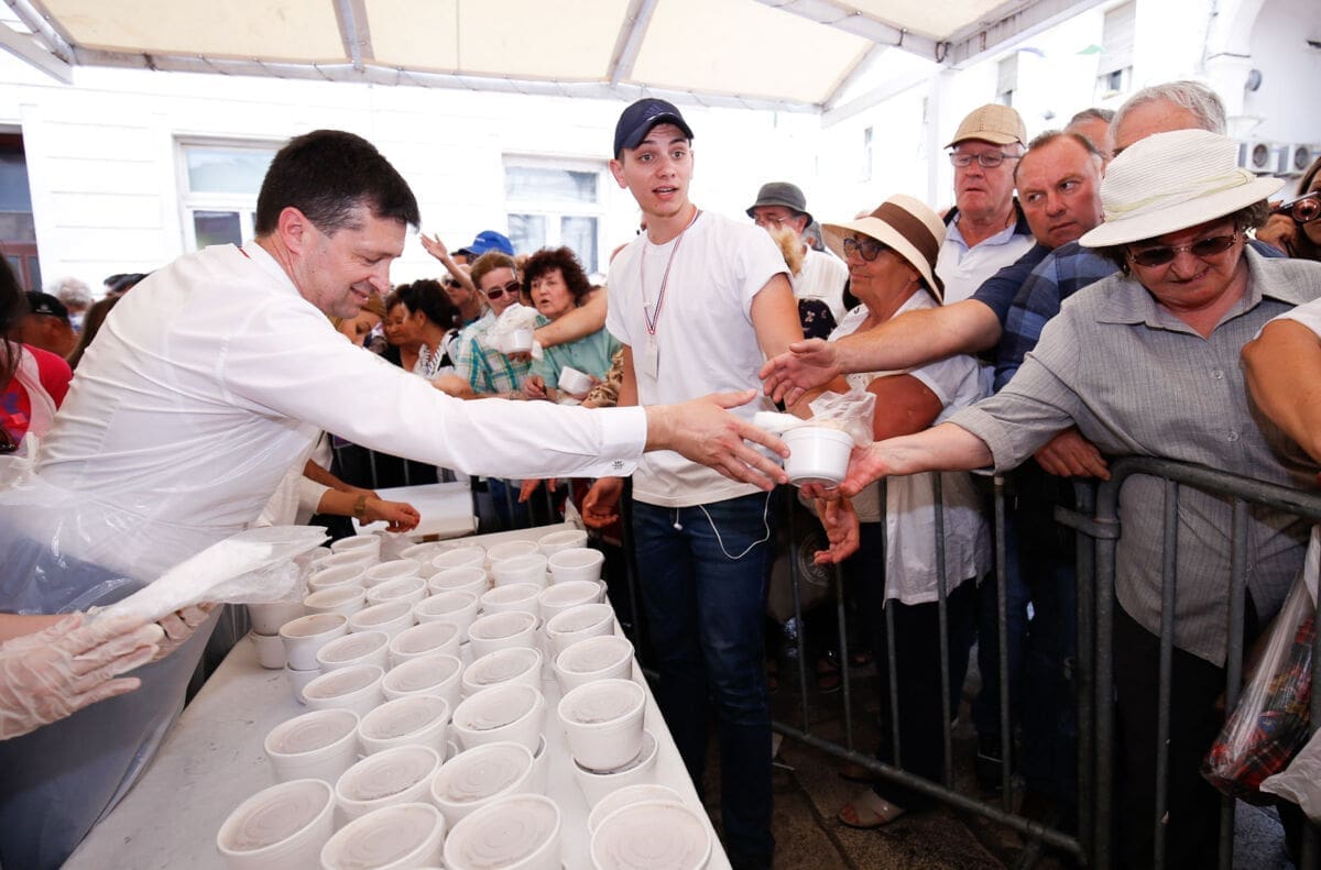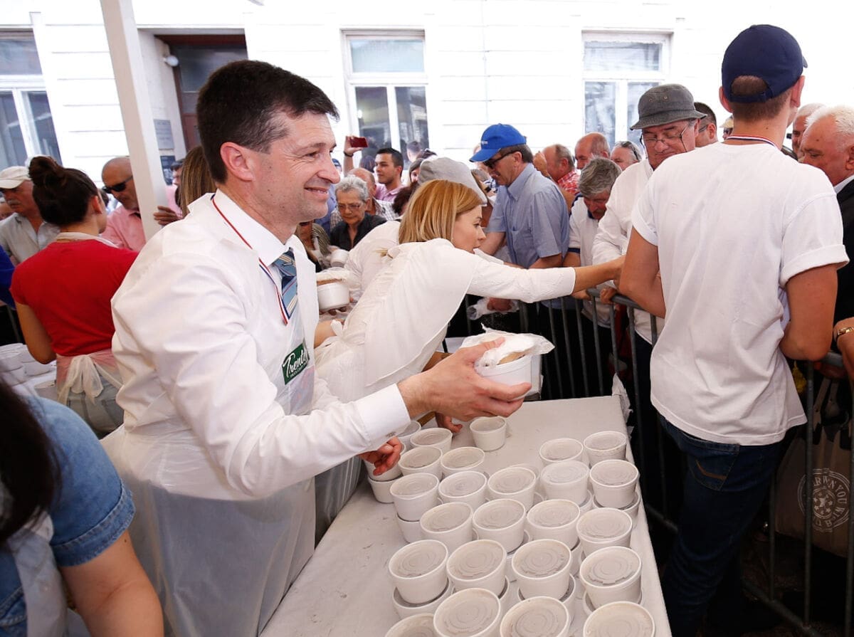 -Danas je proslava Dana grada i našeg nebeskog zaštitnika. Drago nam je i da smo se i tu kratko mogli zadržati i podjeliti ove porcije našim sugrađanima. Želja našeg gradonačelnika je bila da vratimo tu tradicionalnu spizu na naše trpeze i to je razlog zašto je ove godine obnovljena tradicija janjetine s bižima, a jučer smo imali natjecanje u izradi splitske torte. Danas je jedan dio onih koji su došli na svetu misu može okrijepiti s ovom janjetinom s bižima. Kako vidite lijepa je atmosfera, dosta je ljudi. Tu je 5 tisuća porcija, možda je više zainteresiranih, ali nadam se da će danas biti dovoljno ića i pića i da niko neće ostat gladan. - kazala je zamjenica gradonačelnika Jelena Hrgovića.