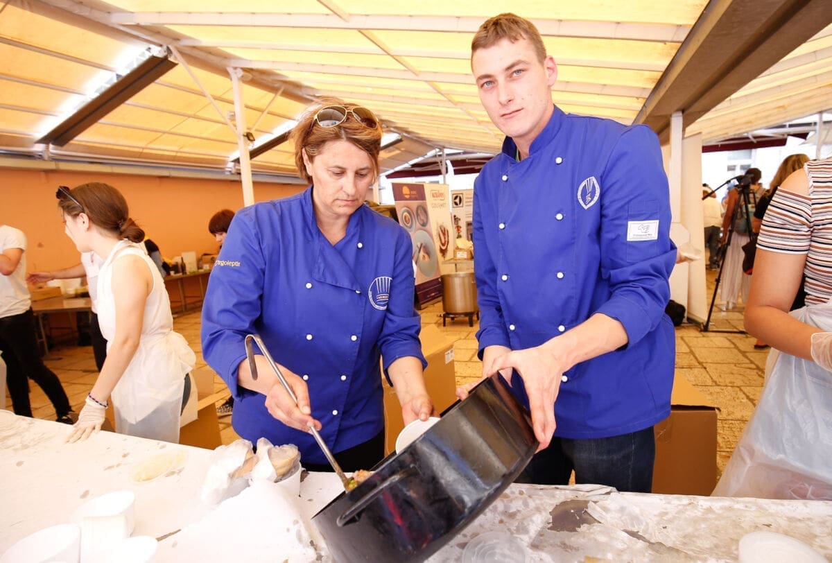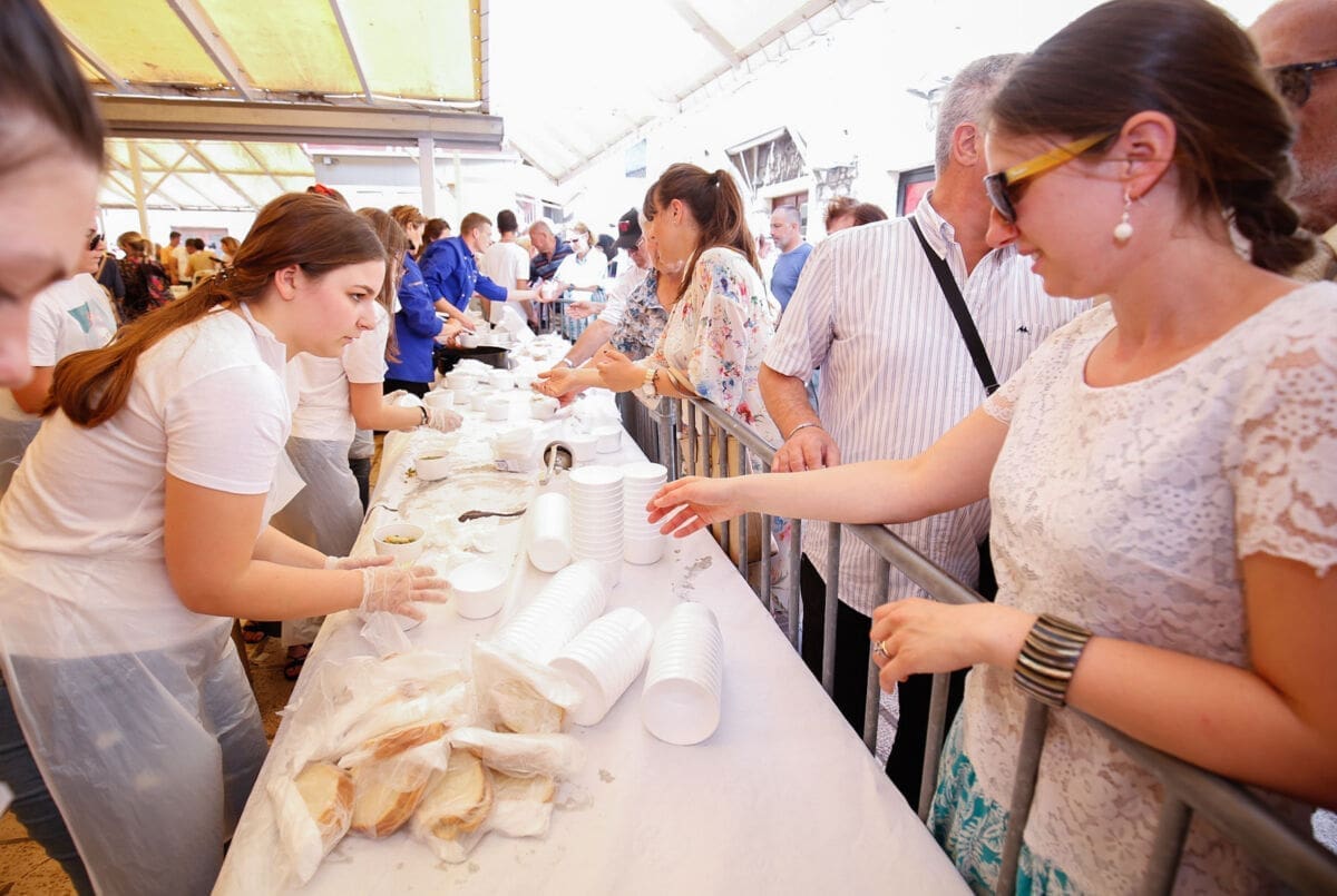 Janjetinu s bižima spremili su kuhari udruženja SKMER, a u jednom trentuku nakon misnog slavlja im se pridružila zamjenica gradonačelnika Jelena Hrgović te zamjenik Nino Vela. Lonac u kojem se spremalo ovo jelo ima 1 200 litara, a svi sastojci za jelo su stigli u Split iz okolnih krajeva.