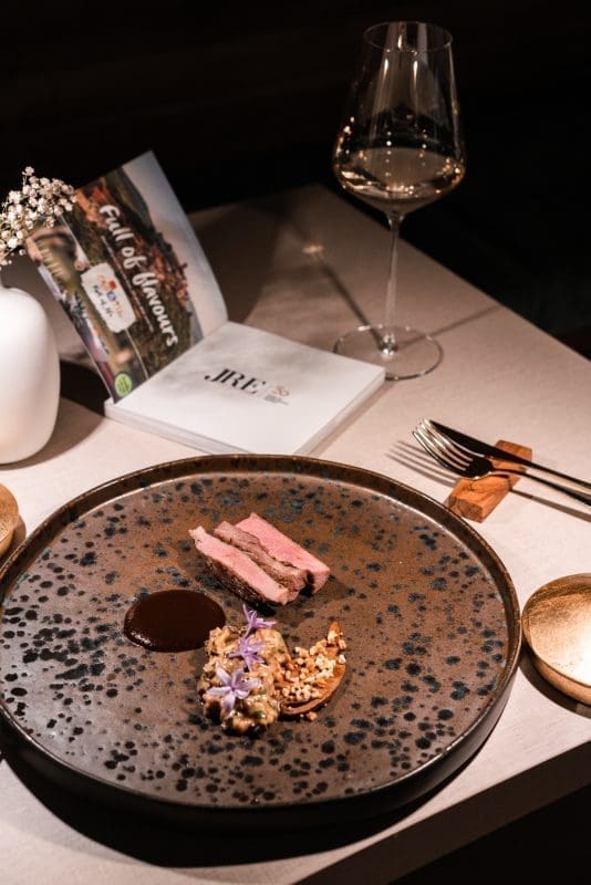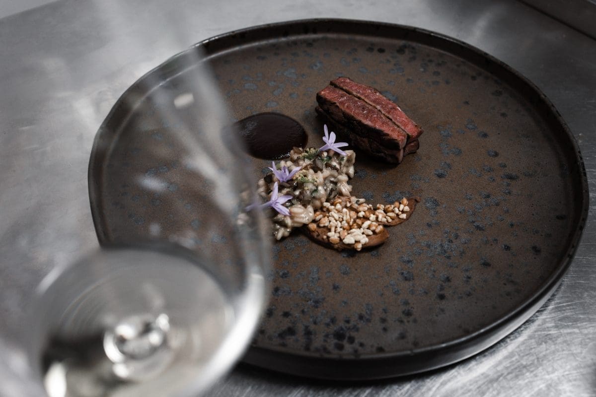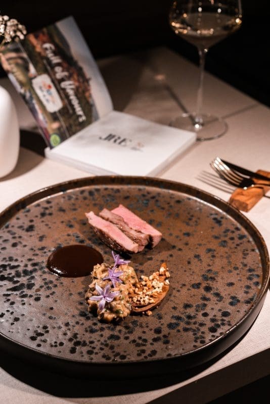 Glavni slijed izrazito je muževno mesno jelo toliko intenzivnih aroma, okusa, mirisa da bih radije pričala o vinu koje ga je pratilo. Kompleksno vino uz kompleksan slijed janjetine, jetre, gljiva u fuziji poentira ovu večeru, ne stavljajući točku na i, već tri uskličnika.