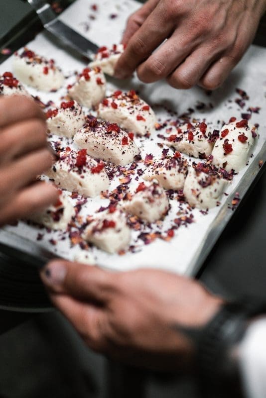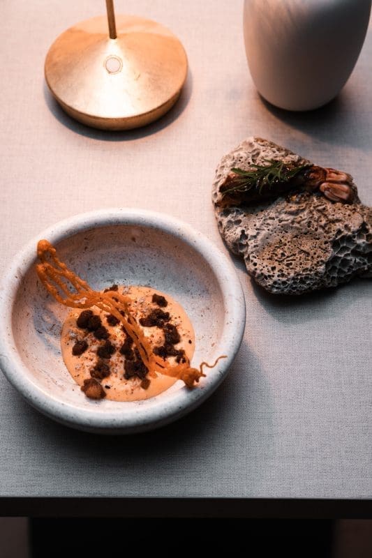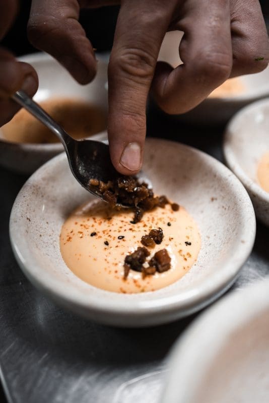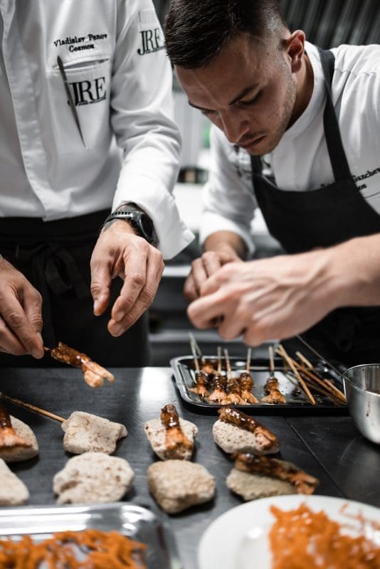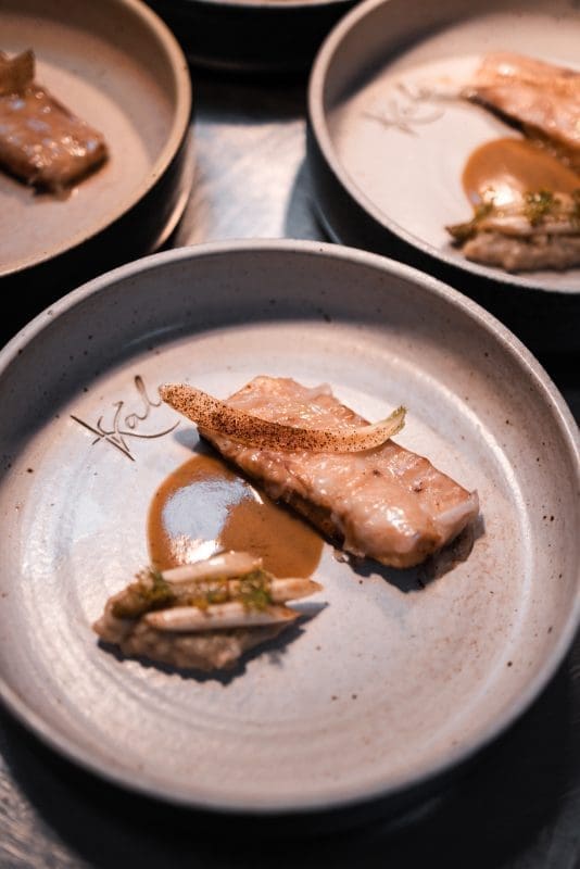 Neki zli jezici na pitanja koja im je najdraža riba odgovaraju - gica, pa je u maniri toga Vladislav filetu od ribe odjenuo košuljicu od pancete. Da, dobro ste pročitali, bugarski kuhar je filet sljubio s tankim slojem slanine. Umak od fermentiranih gljiva i bijele šparoge zanimljivo je zaokružio priču koja bi zadovoljila sve “zlobnike” i hejtere dobrog bokuna ribe. Iako sam pomno pratila vinsku prezentaciju, tek u ovom slijedu imam potrebu spomenuti Tristecu iz butik vinarije Senjković iz Nerežišća koja pomalo erotski ovaj slijed ljubi prvo u vrat, pa obraz, a potom strastveno kako i priliči.
