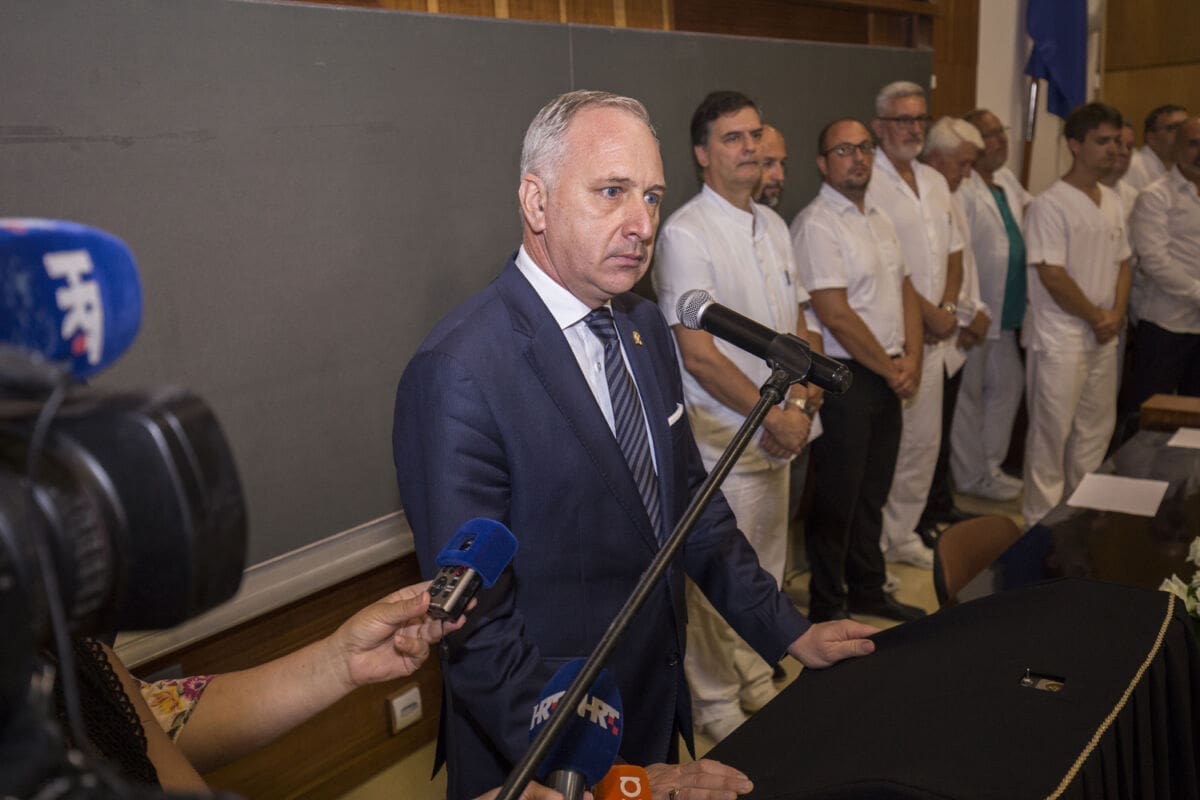 Ministar zdravstva Milan Kujundžić napokon se obratio medijima. Dok je jučer u razgovoru s novinarom Indexa, pokušao izbjeći odgovore na pitanja, a našao je i razloga sam smijeh, danas se pred novinarima činio mnogo potreseniji. Kujundžić je danas sudjelovao na komemoraciji za preminulog ravnatelja splitskog KBC Ivu Jurića.