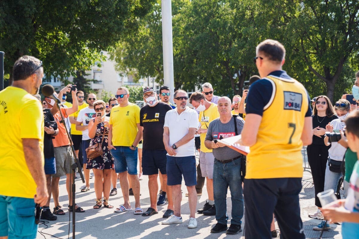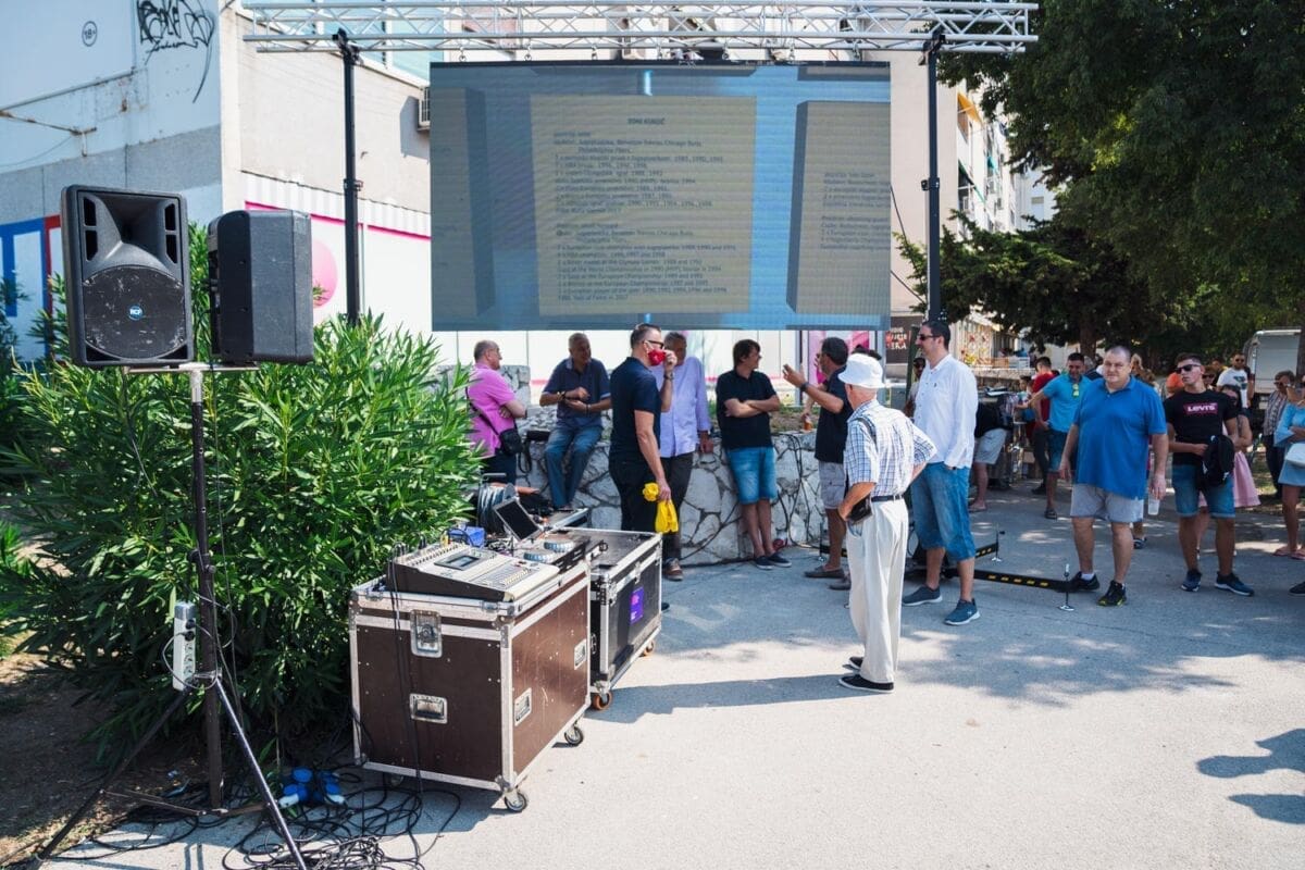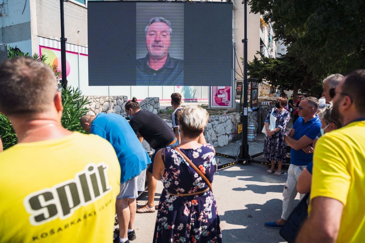 - Volio bih strašno da sam tu. Nadam se da ću u skoroj budućnosti moć doć tu. To je vrlo važno mjesto za mene. Još jednom hvala svima, hvala dobrim ljudima što su me se sjetili i što cijene moju karijeru, doprinos košarci i Splitu. Vidimo se - poručio je Kukoč na oduševljenje prisutnih.