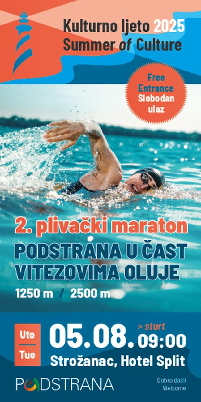 U utorak 5. kolovoza ujutro u 09:00 u Strožancu ispred hotela Split upriličuje se 2. plivački maraton „Podstrana u čast vitezovima Oluje“ u disciplinama 1250 m i 2500 m.