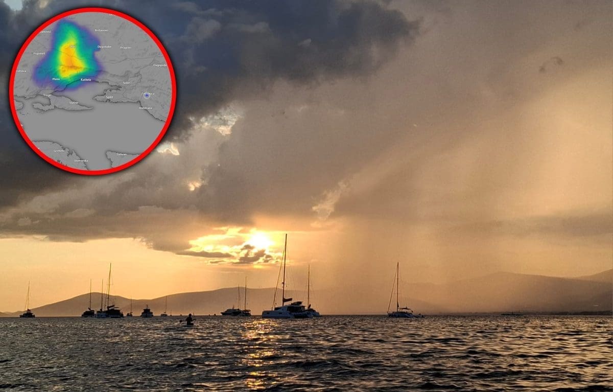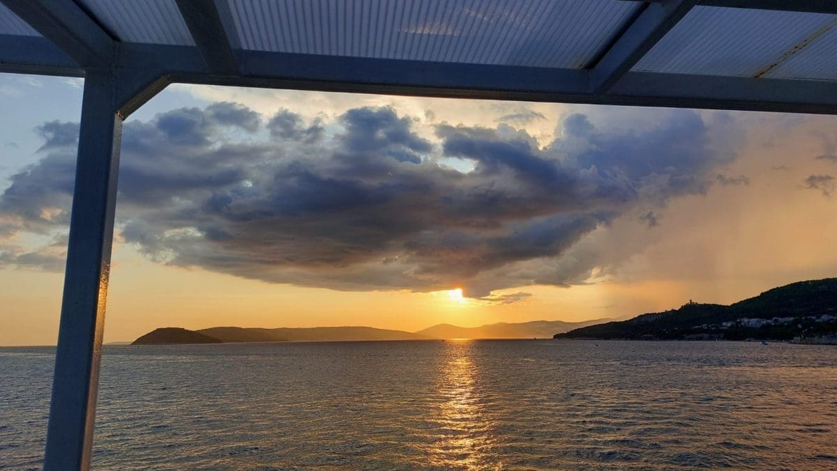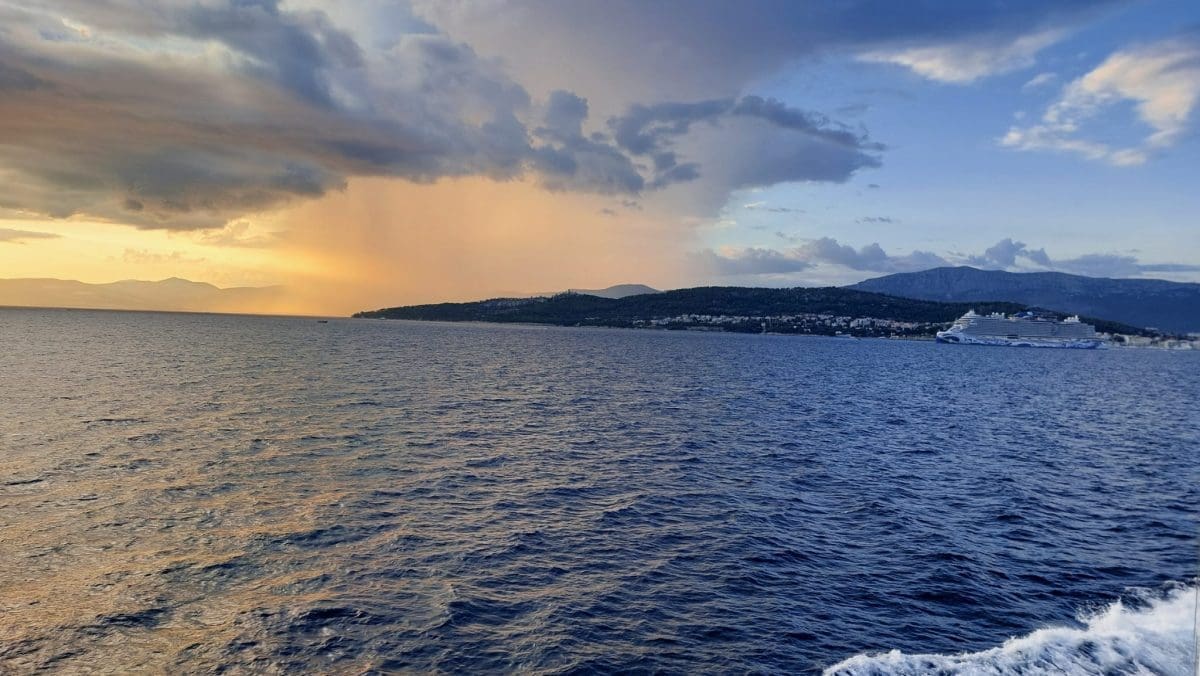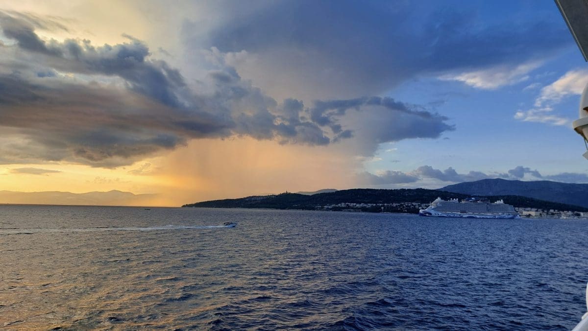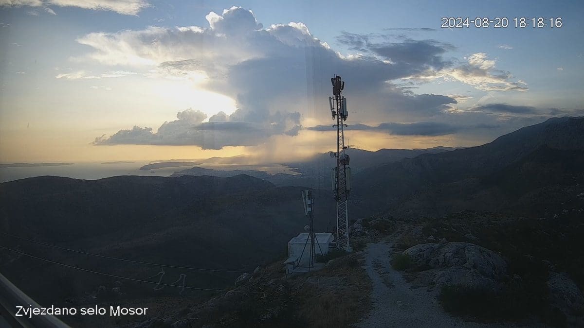 U kasnim popodnevnim satima omanji kumulonimbus razvio se u trogirskom zaleđu i donio prolazan pljusak. Pojavio se u vrijeme zalaska sunca pa je izgleda posebno lijepo. Donosimo nekoliko prizora s trajekta i Zvjezdanog sela Mosor.