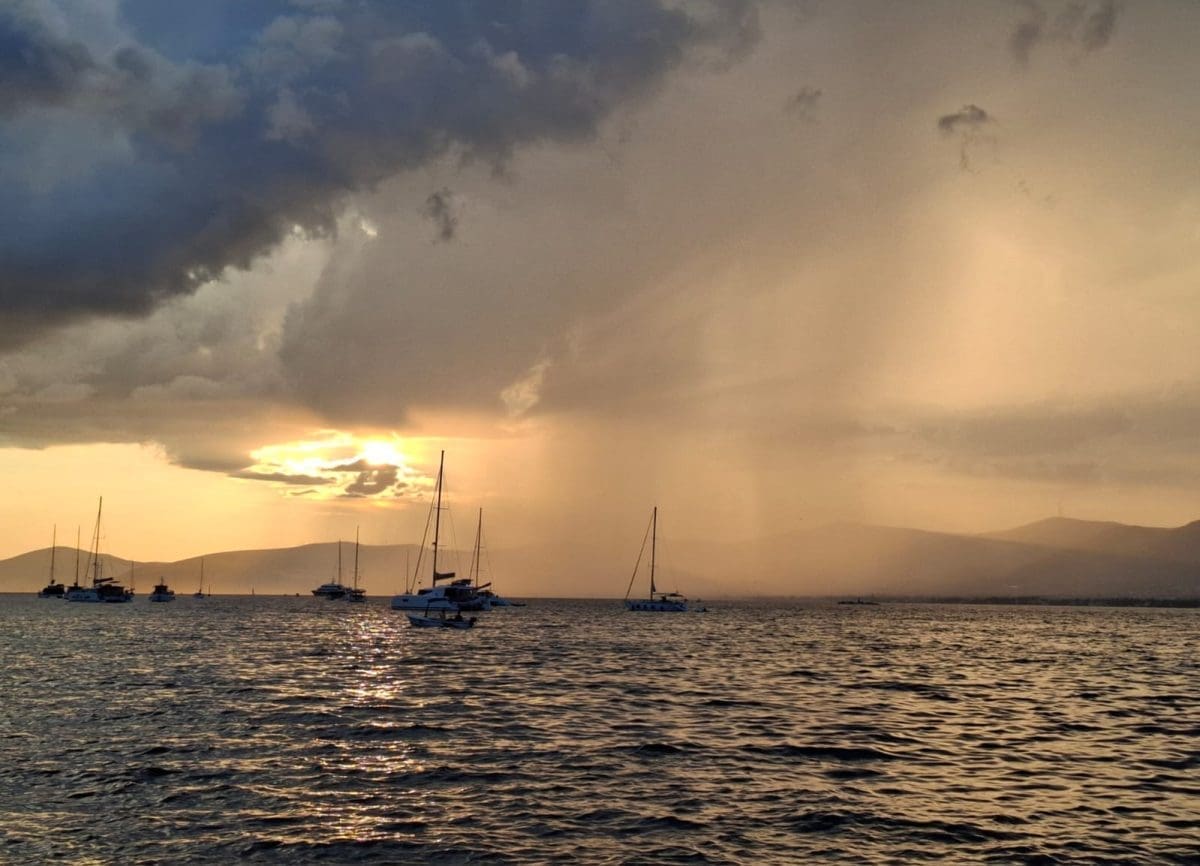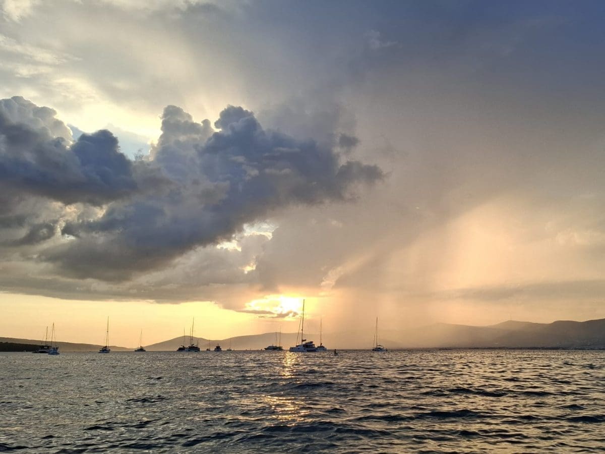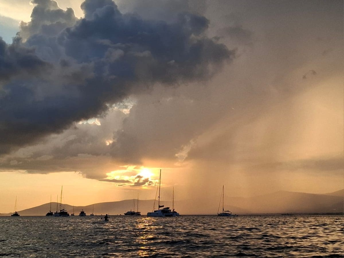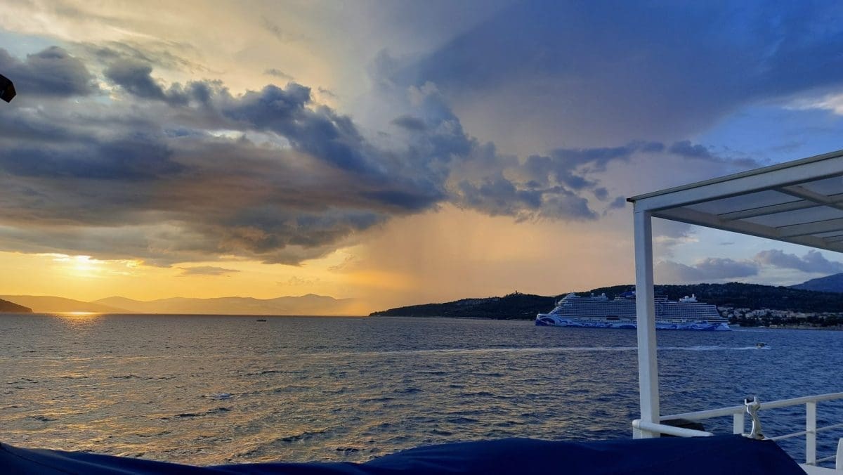 U kasnim popodnevnim satima omanji kumulonimbus razvio se u trogirskom zaleđu i donio prolazan pljusak. Pojavio se u vrijeme zalaska sunca pa je izgleda posebno lijepo. Donosimo nekoliko prizora s trajekta i Zvjezdanog sela Mosor.