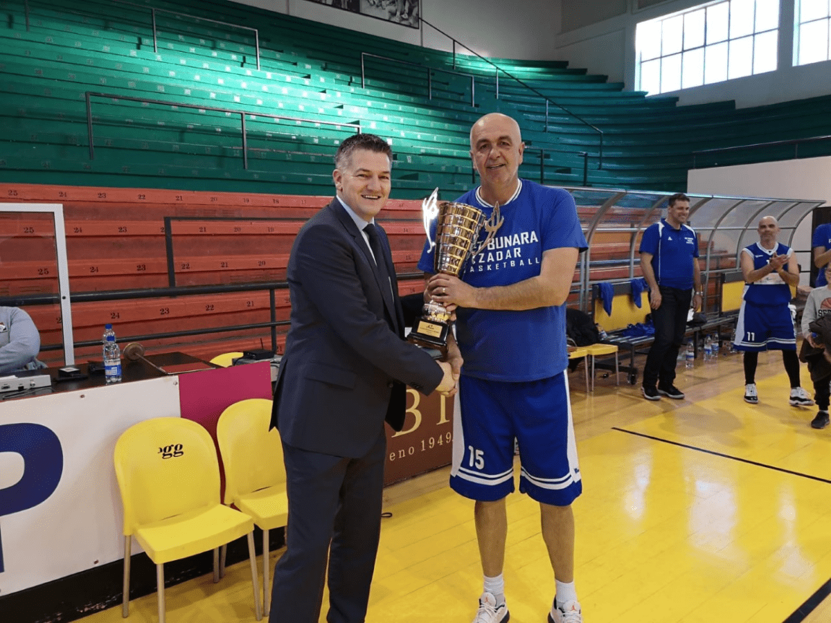 Pehar pobjedničkom kapetanu Stipi Šarliji uručio je glavni tajnik Hrvatskog košarkaškog saveza Josip Vranković.