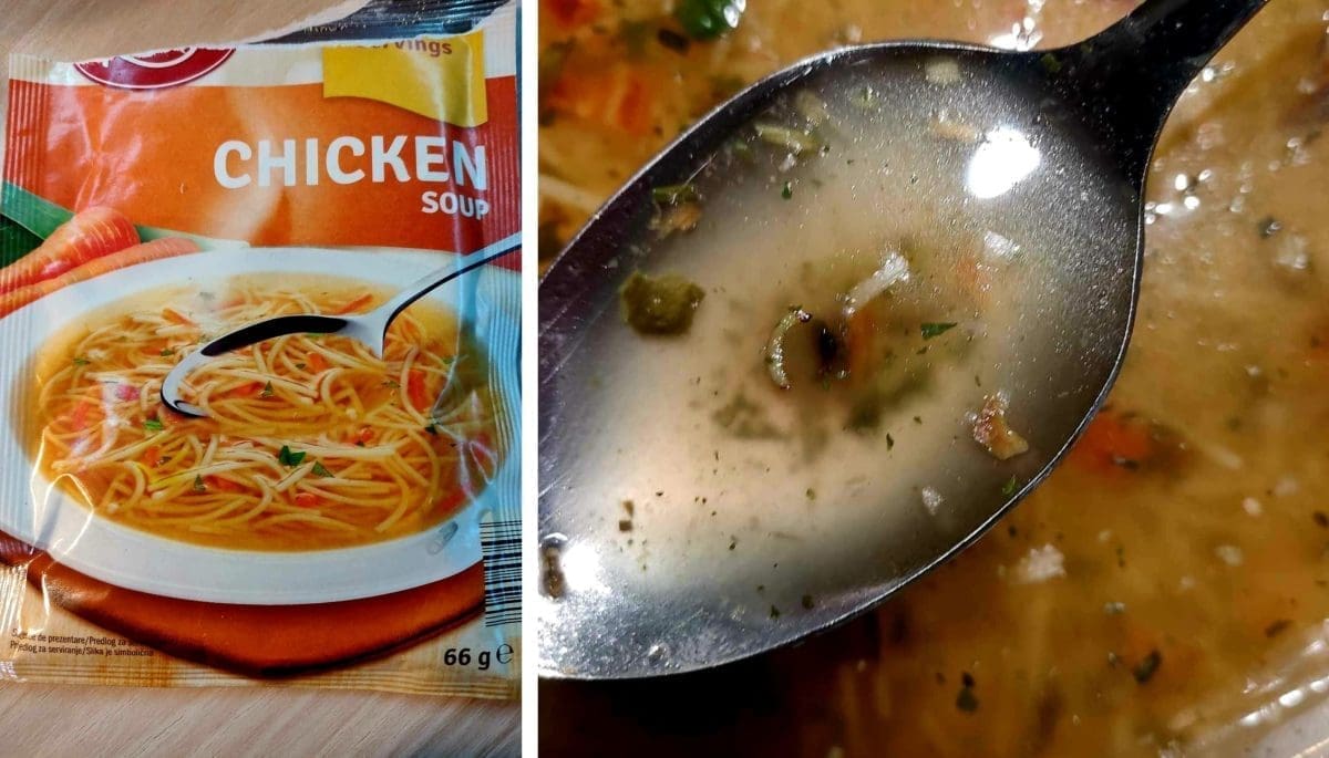 Kupili su dvije vrste Kania juhe – kokošju i proljetnu, zapravo povrtnu juhu. To je Lidlov brand juha. U obje su se nakon kuhanja pojavili crvi!