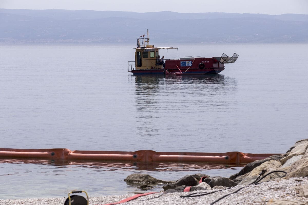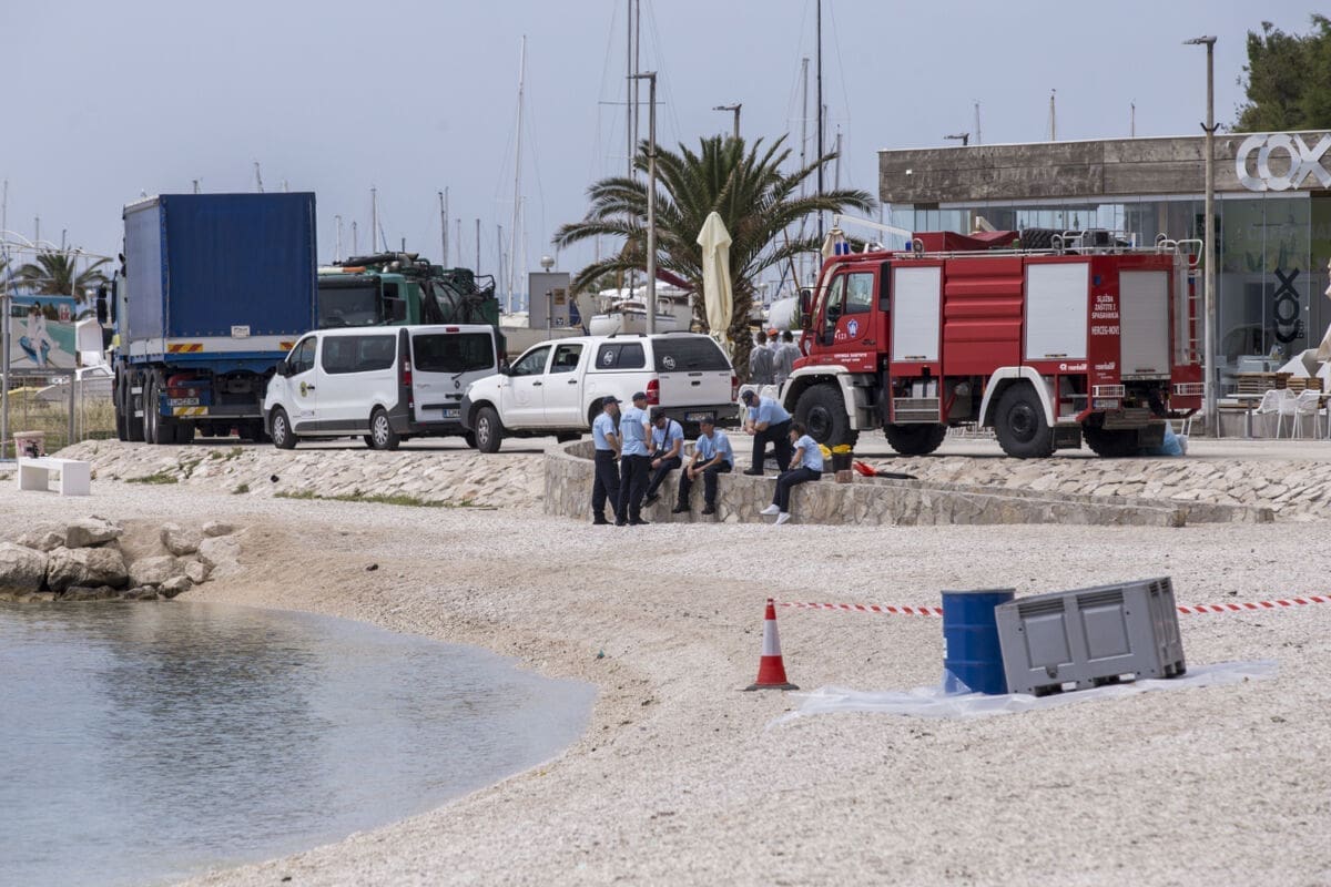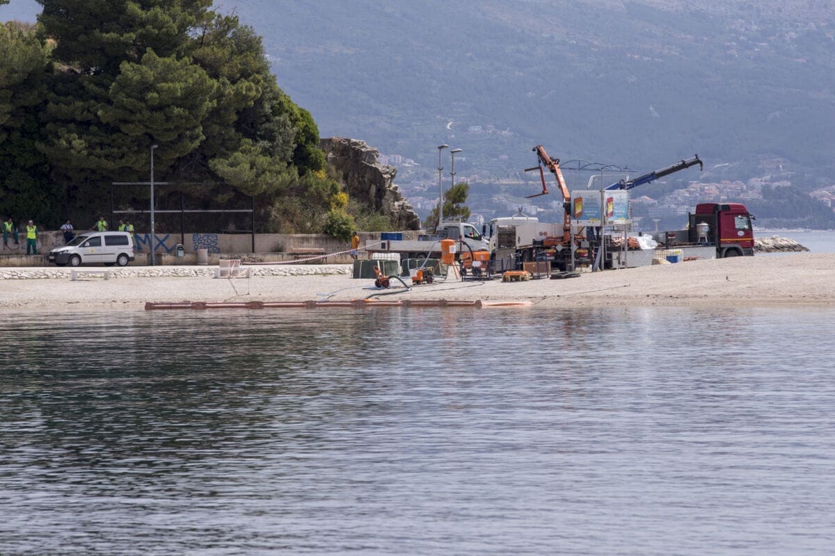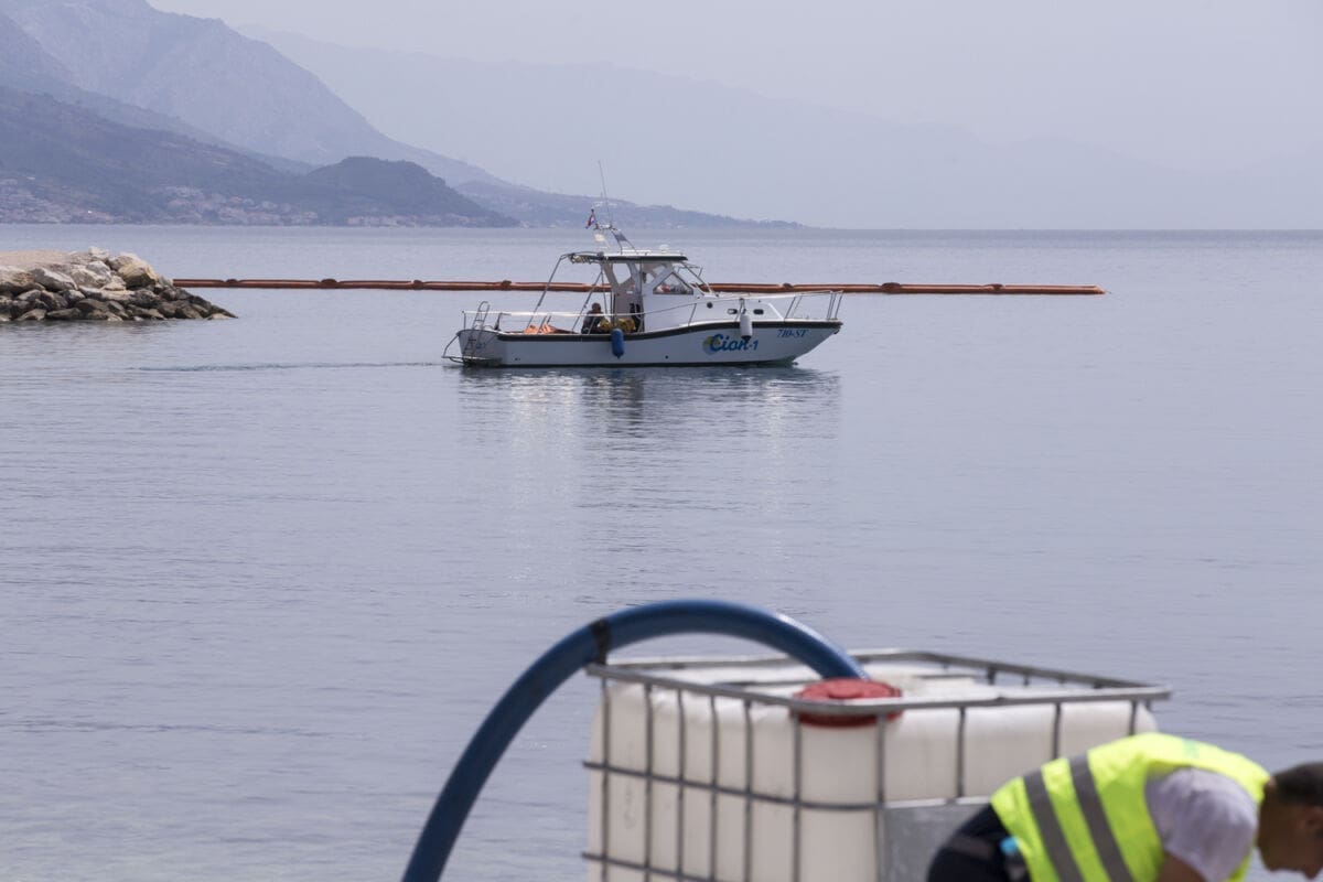 Dok su se bezbrižno kupali i sunčali u uvalu su pristigli brodovi Ciana, Državna uprava za zaštitu i spašavanje, vatrogasci i druge službe i započele s postavljanjem plutajuće brane koja služi za ograničavanje onečišćenja mora.