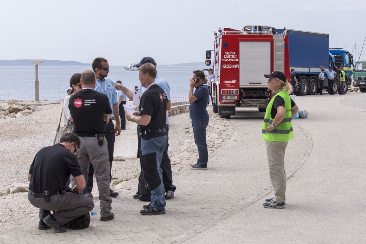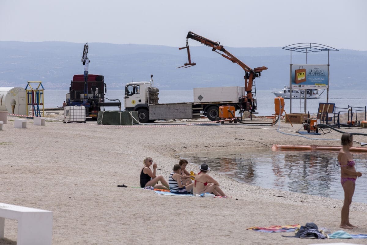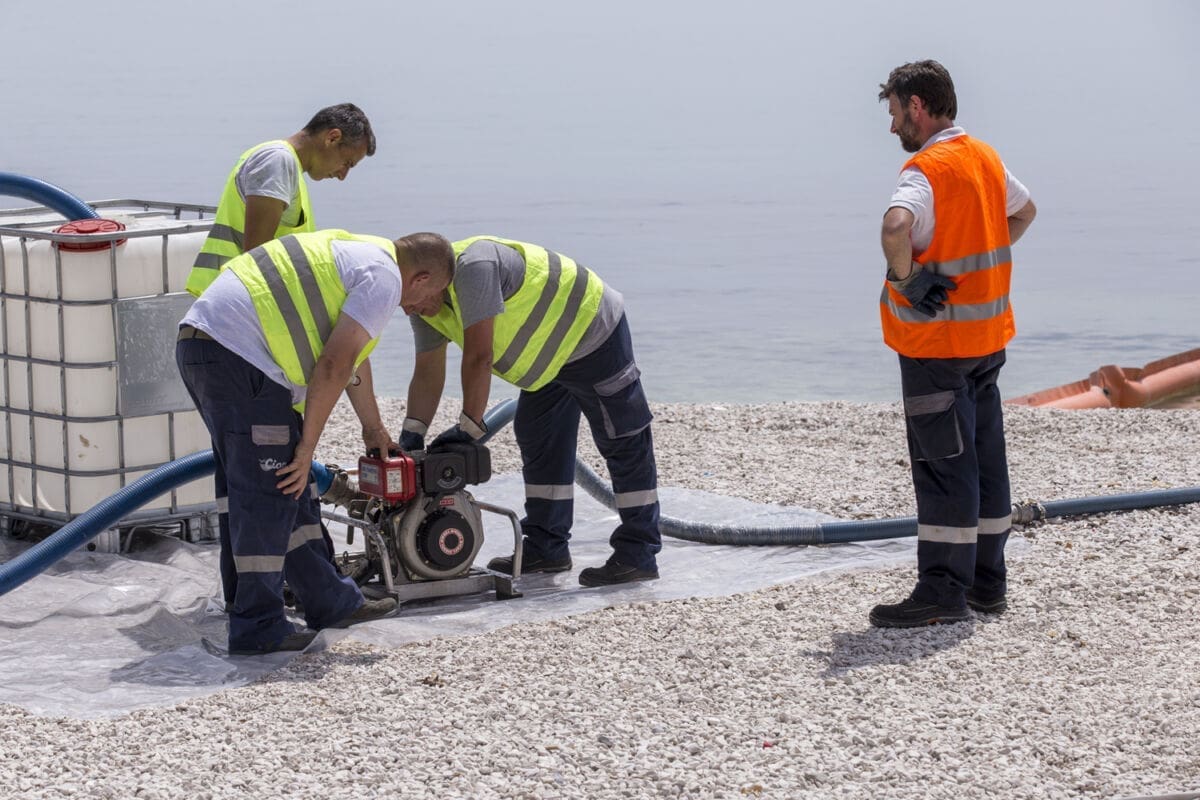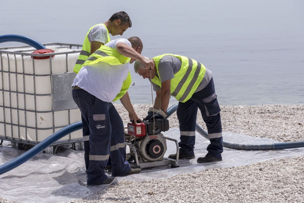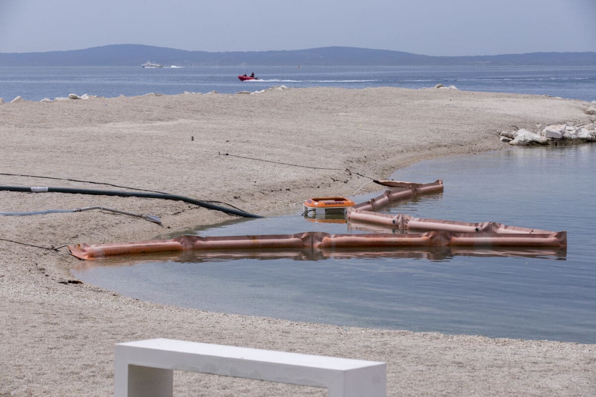 Dok su se bezbrižno kupali i sunčali u uvalu su pristigli brodovi Ciana, Državna uprava za zaštitu i spašavanje, vatrogasci i druge službe i započele s postavljanjem plutajuće brane koja služi za ograničavanje onečišćenja mora.