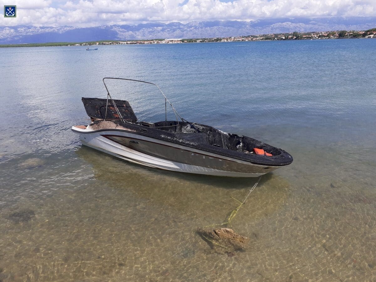 Podrtina opožarene brodice, tip gliser duljine 5,94 metara, hrvatske zastave ostala je u plutajućem stanju te je dotegljena do obližnje obale i izvađena iz mora.