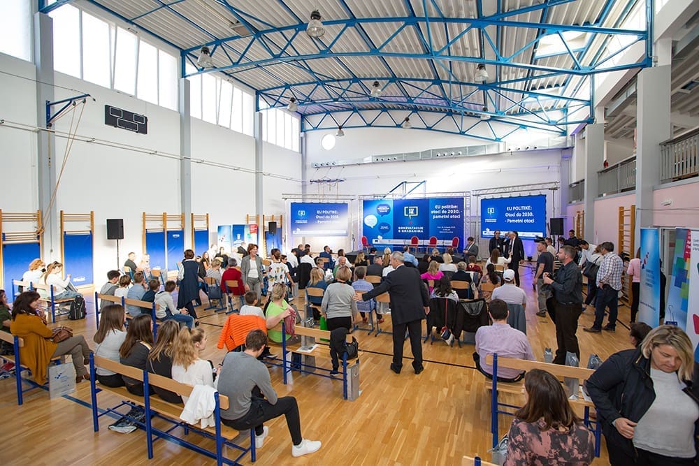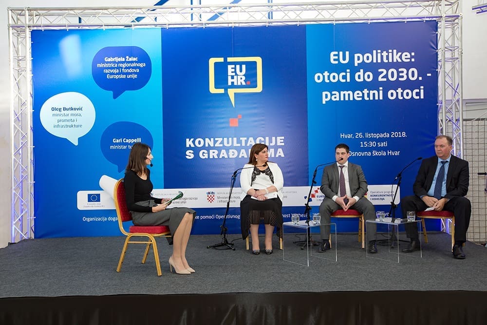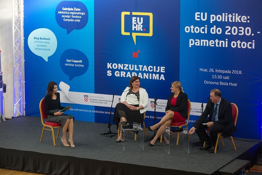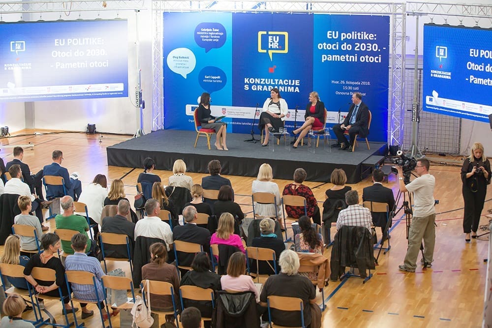 Nakon sjednice Vlade RH u Hvaru, u hvarskoj osnovnoj školi održane su konzultacije s građanima na temu "EU politike: otoci do 2030. - pametni otoci".