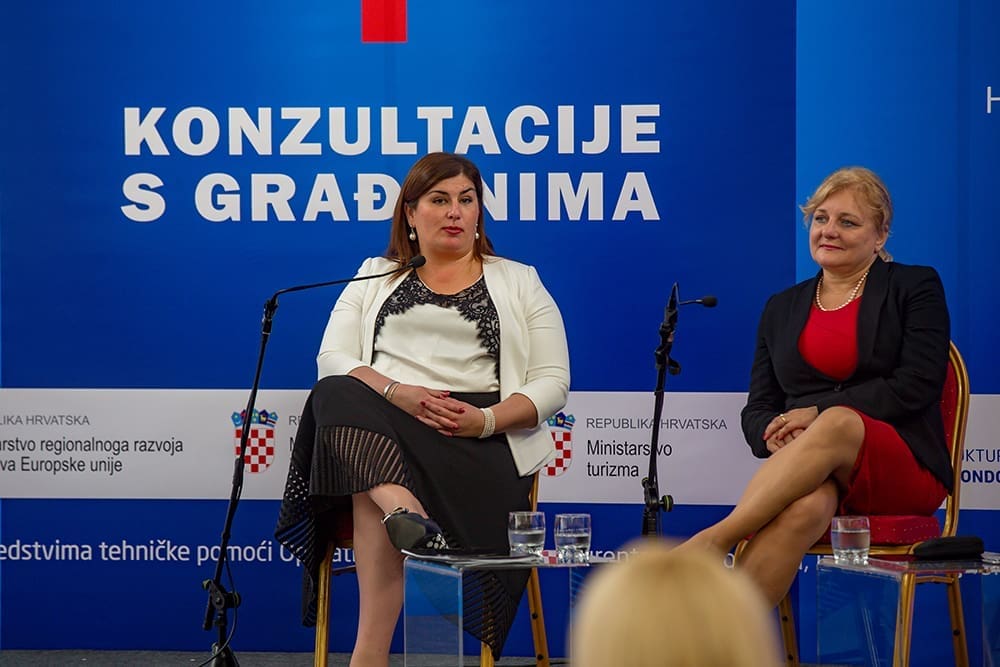 U punoj dvorani pred građane se stali ministrica Gabrijela Žalac i ministar Oleg Butković.