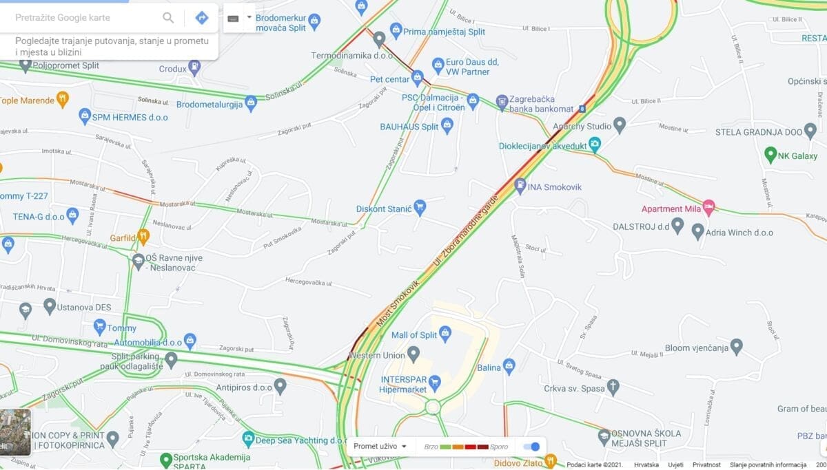 Čitatelji javljaju da se stvaraju velike gužve, a to potvrđuje i Google procjena gustoće prometa iza 9 sati.