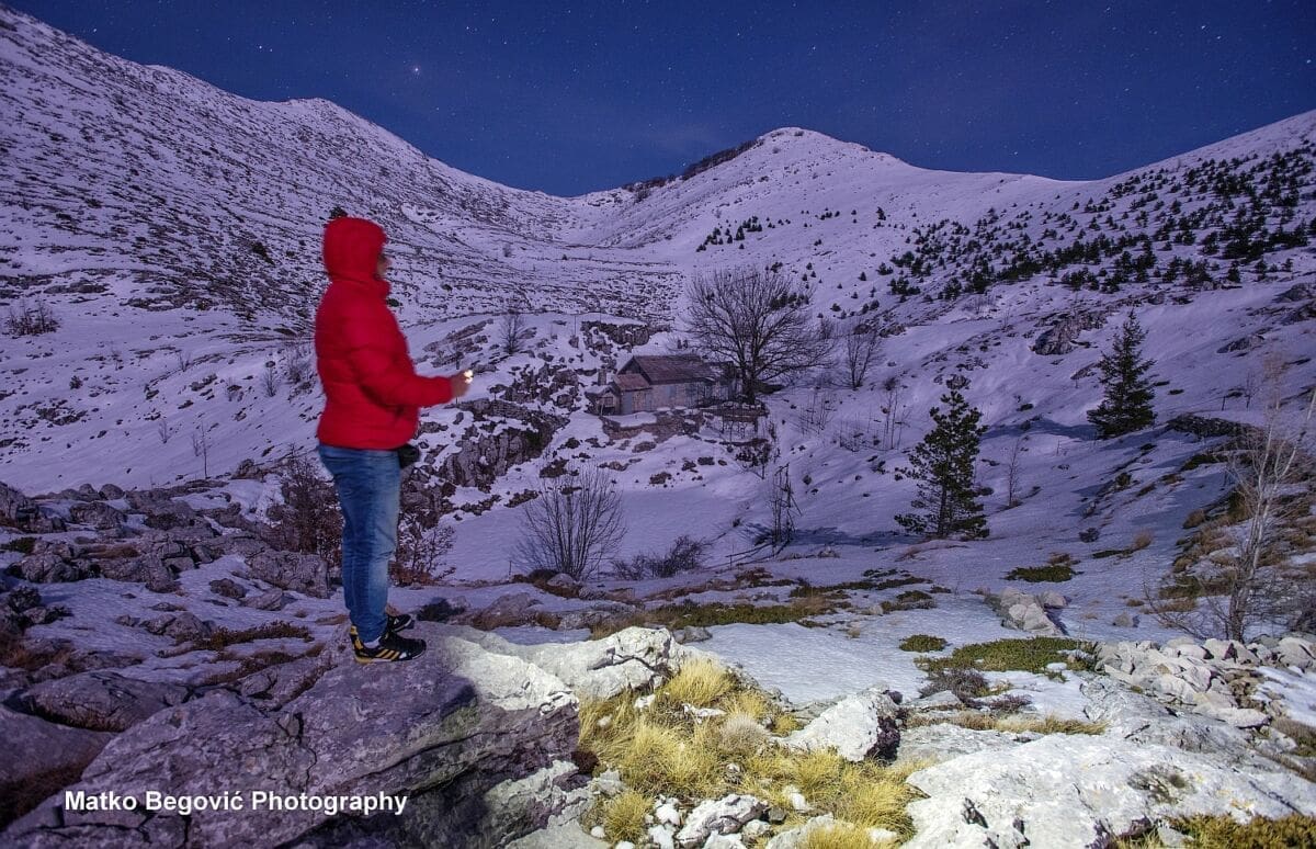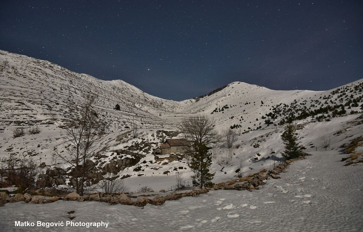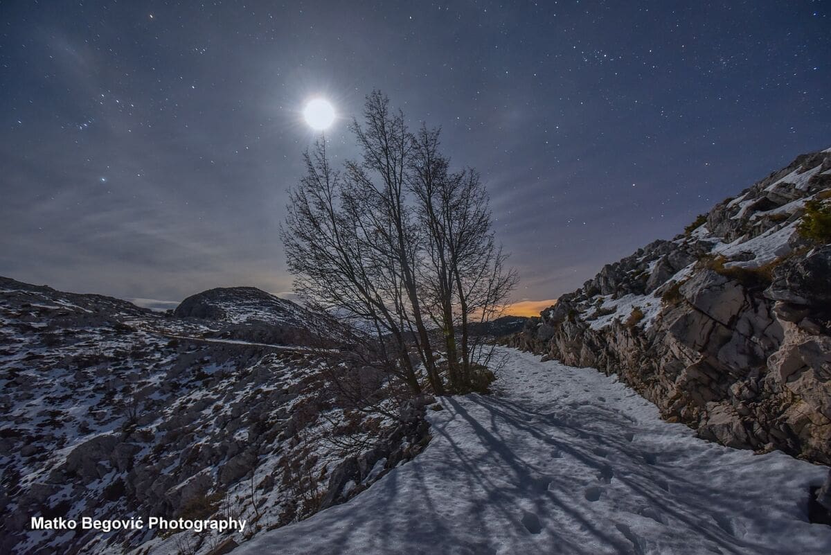 U nešto nižim predjelima Biokova sinoć je boravio makarski fotograf Matko Begović (više njegovih fotografija možete pogledati na njegovoj fotogrfskoj stranici). Što je snimio na mjesečinom obasjanom snježnom Biokovu, pogledajte u galeriji: