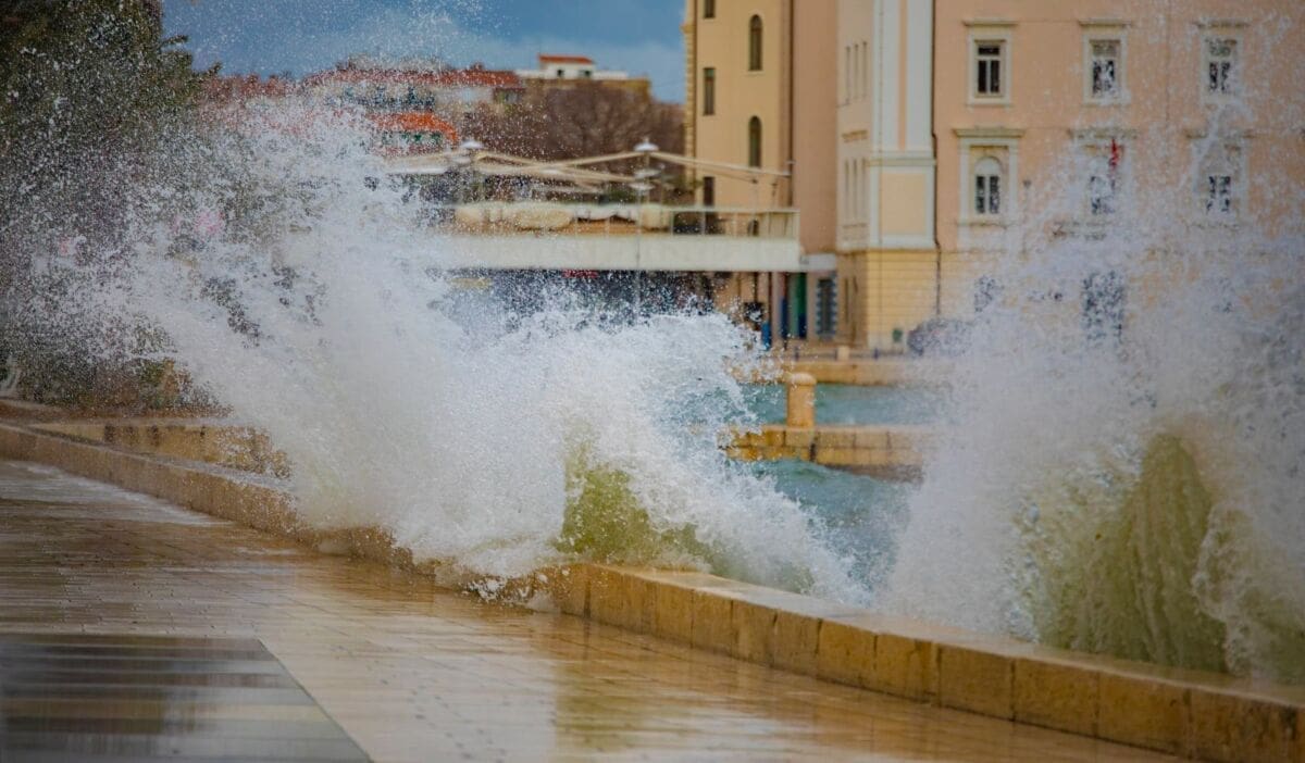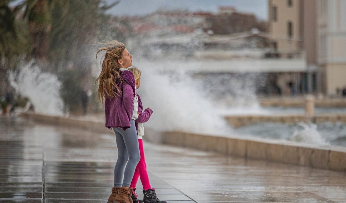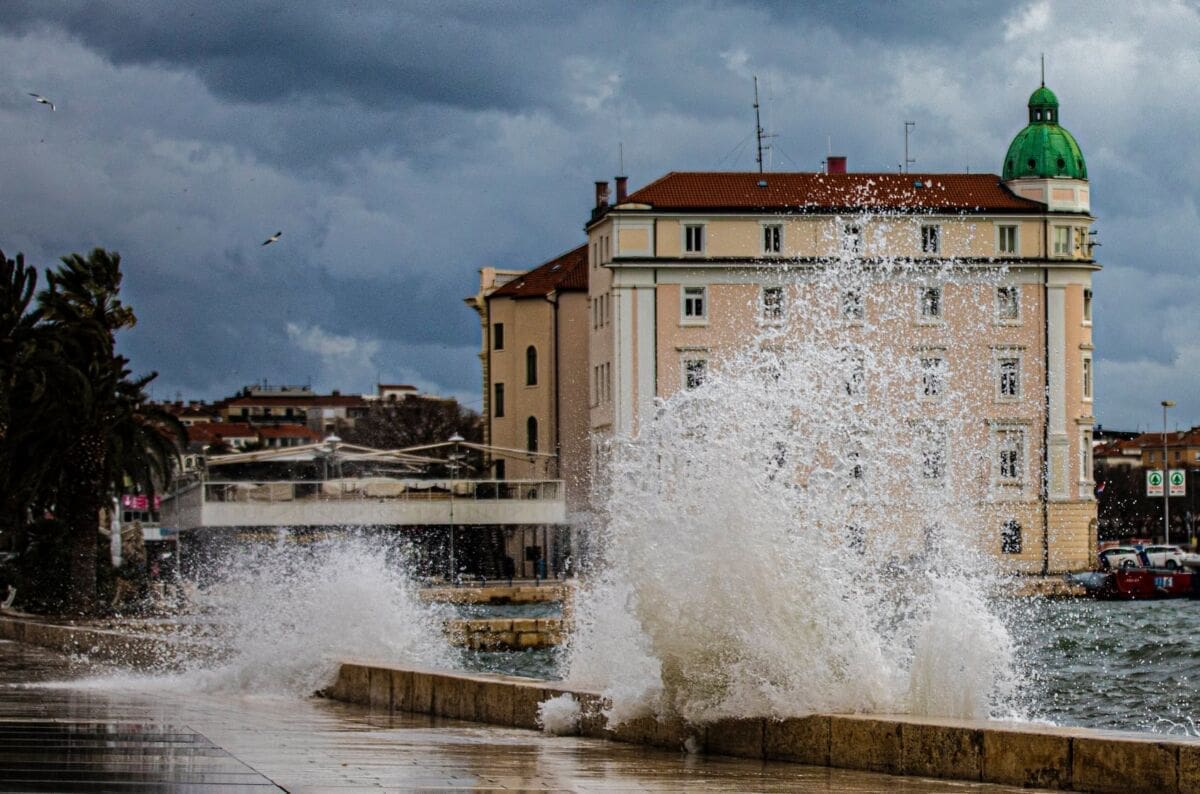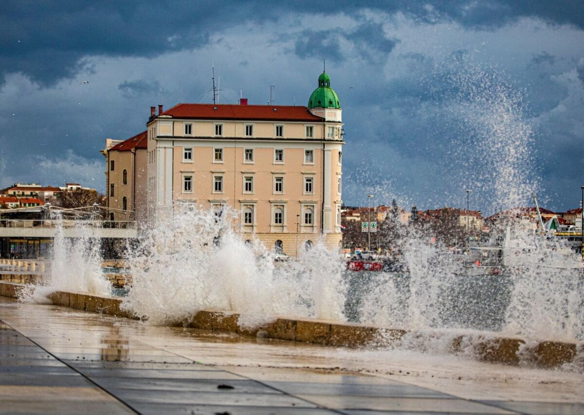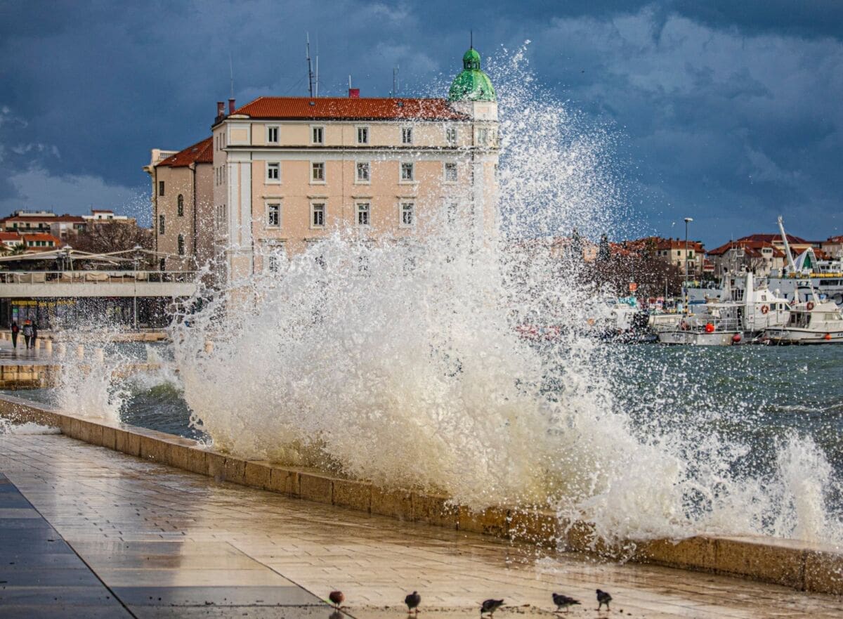 Subota je pravi dan za šetnju po splitskoj Rivi, no danas je valjalo izbjegavati dijelove bliže moru. Naime, jak lebić puše cijeli dan, a najjače udare imao je jutros (109 km/h) pa su valovi "divljali".