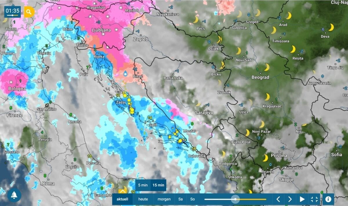 Početak klimatološke zime protječe u znaku utjecaja sredozemne ciklone. U dijelu unutrašnjosti donijela je prvi sezonski snijeg, u Lici i Gorskom kotaru jučer su pale značajnije količine snijega, a snježnih je pahulja na sjevernom Jadranu povremeno bilo prilično nisko.