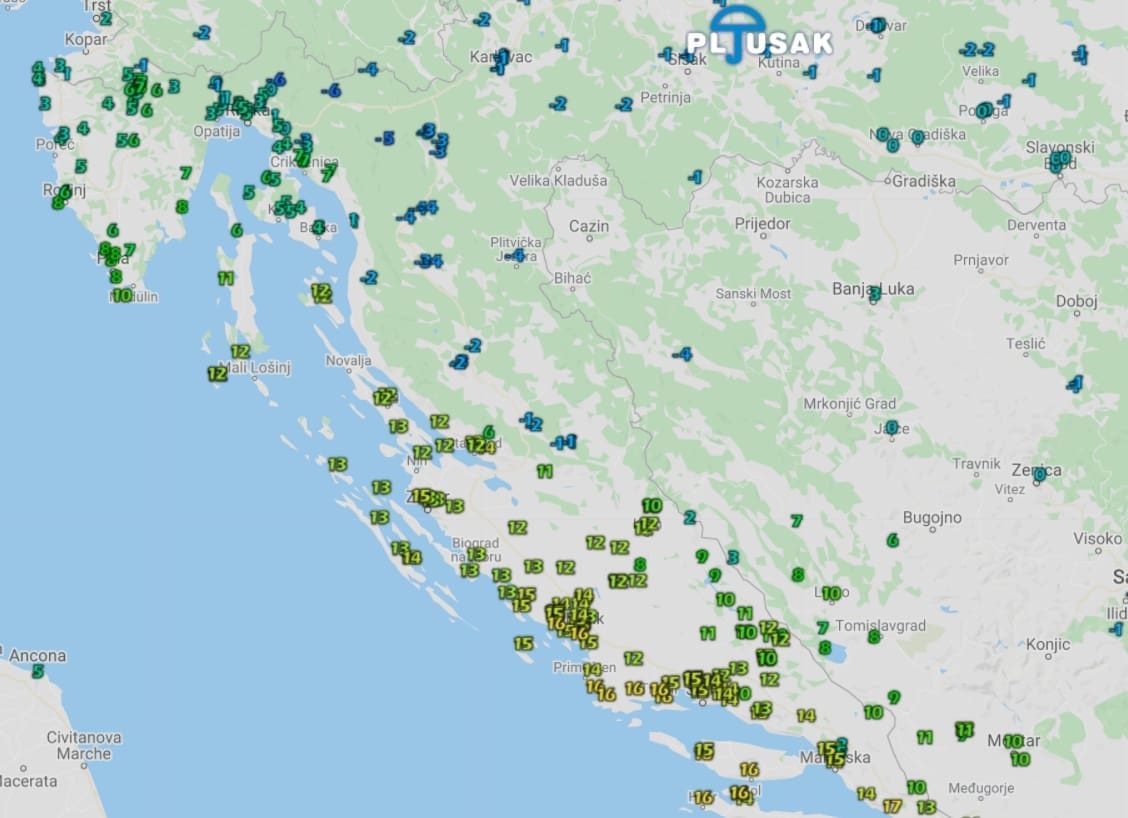 U Dalmaciji su već u srijedu ponegdje pale značajnije količine kiše, iako je to tek početak iznimno dugog kišovitog razdoblja. Samo u četvrtak ponegdje će pasti 50 do 100 litara kiše po kvadratnom metru, a sljedećih 10-ak dana moglo bi lokalno pasti i više od 200 litara.