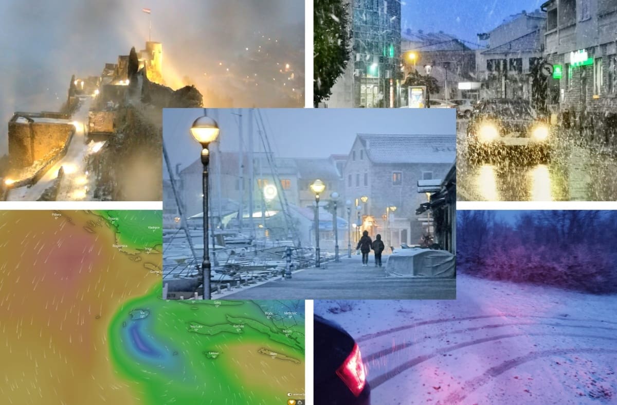 Ona daje "dobitnu" kombinaciju za snijeg - vlagu i hladnoću u svojoj pozadini. Snijeg je još jutros zahvatio unutrašnjost zemlje, zatim se zabijelio ogroman dio sjevernog Jadrana, a popodne i navečer hladnoća sve više zahvaća Dalmaciju.