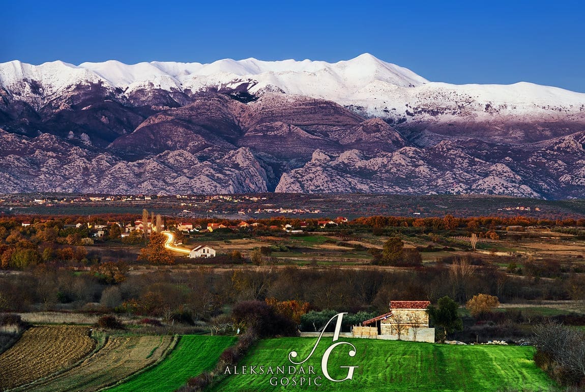 Zadarski fotograf Aleksandar Gospić snimio je predivan prizor iz Ravnih kotara gdje se temperature zraka noćas spustila ispod nule. Snježni Velebit u pozadini dodatno je uljepšao kadar...